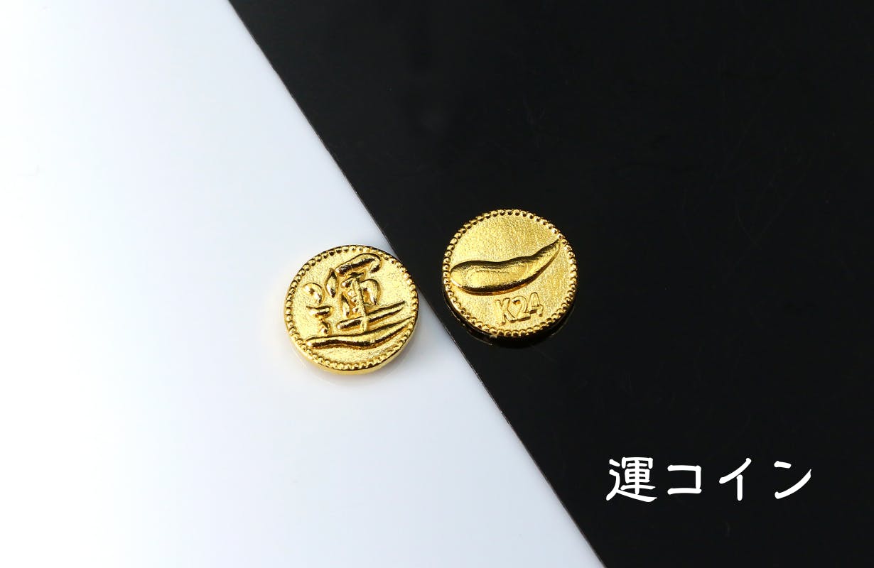 画像:運コイン(大)(小)ともに「運」の文字と「K24」の文字入り。