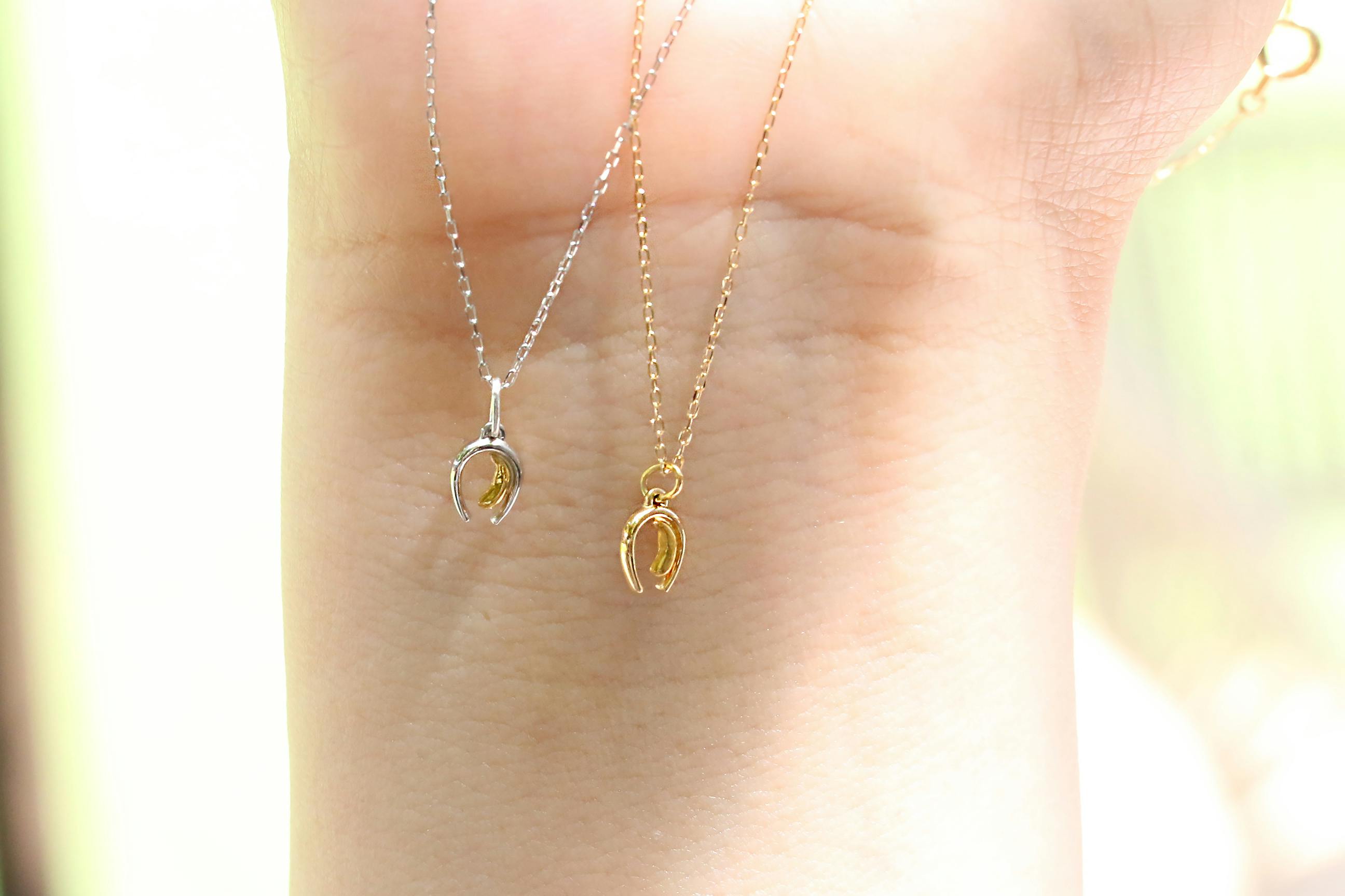 純金の運幸とペンダントの部分は左が「プラチナ900」、右が「K18イエローゴールド」製。