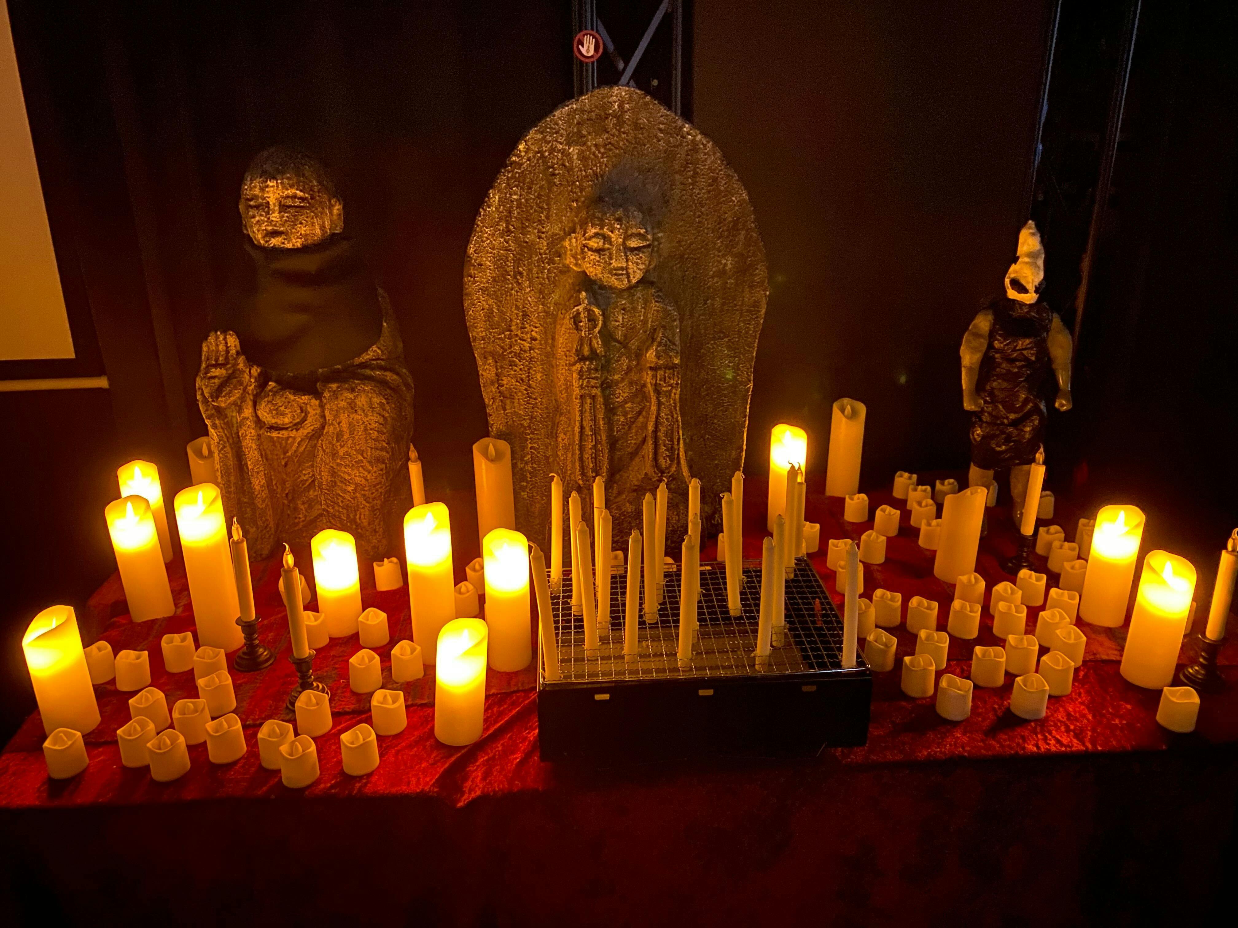 映画の小道具として借りてきた「お地蔵さま」を映画の完成と共に呪物に変えていくことが目的となっています。