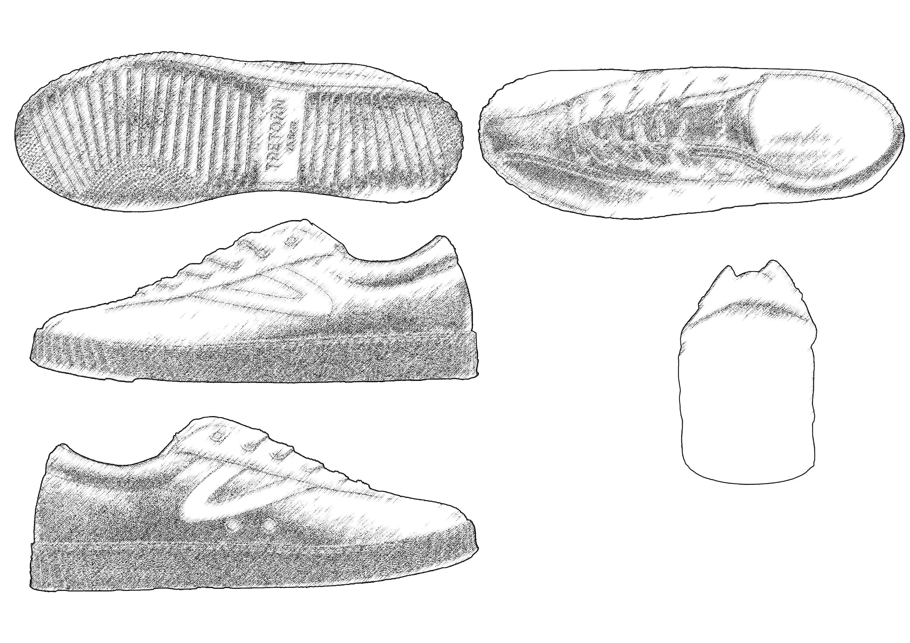 ランニングシューズタイプのアッパーにトレトンのアイコンであるホワイトラバーのソールの組み合わせ。