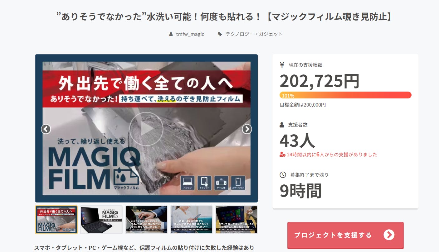 2023/08/30 18:00こんにちは、TMFWです!プロジェクト終了までいよいよ残り一日となりました。おかげ様で40名の方にもご支援して頂き、大変嬉しく思います!より多くの方にマジックフィルムを知ってもらうため、最後まで目標達成を目指して頑張りますので、引き続き応援宜しくお願い致します。 もっと見る