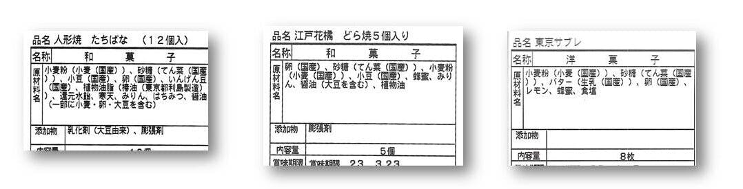 「小麦粉」国産100% 東京都東久留米市産 柳久保小麦(江戸東京野菜)・里の空、北海道産 北海道アトレージュ 「鶏卵」国産100% 東京都立川市・あきる野市産他・近隣県産 「小豆」国産100% 北海道産 小豆 「隠元豆」国産100% 北海道産 大手亡 1格 「砂糖」国産100% 北海道産 甜菜糖 「乳製品」国産100% 北海道産 生乳 「江戸東京野菜」国産(東京産)100% 小平市・瑞穂町他 「内藤とうがらし」国産(東京産)100% 都立瑞穂農芸高等学校他 「食塩」国産(東京産)100% 東京都伊豆大島町 海の精 「緑茶」国産(東京産)100% 東京都西多摩郡瑞穂町 東京狭山茶 「新大正糯」国産100% 石川県産・富山県産 「桜葉」国産100% 静岡県・長野県 大島桜 「椿油」国産(東京産)100% 東京都利島村製造