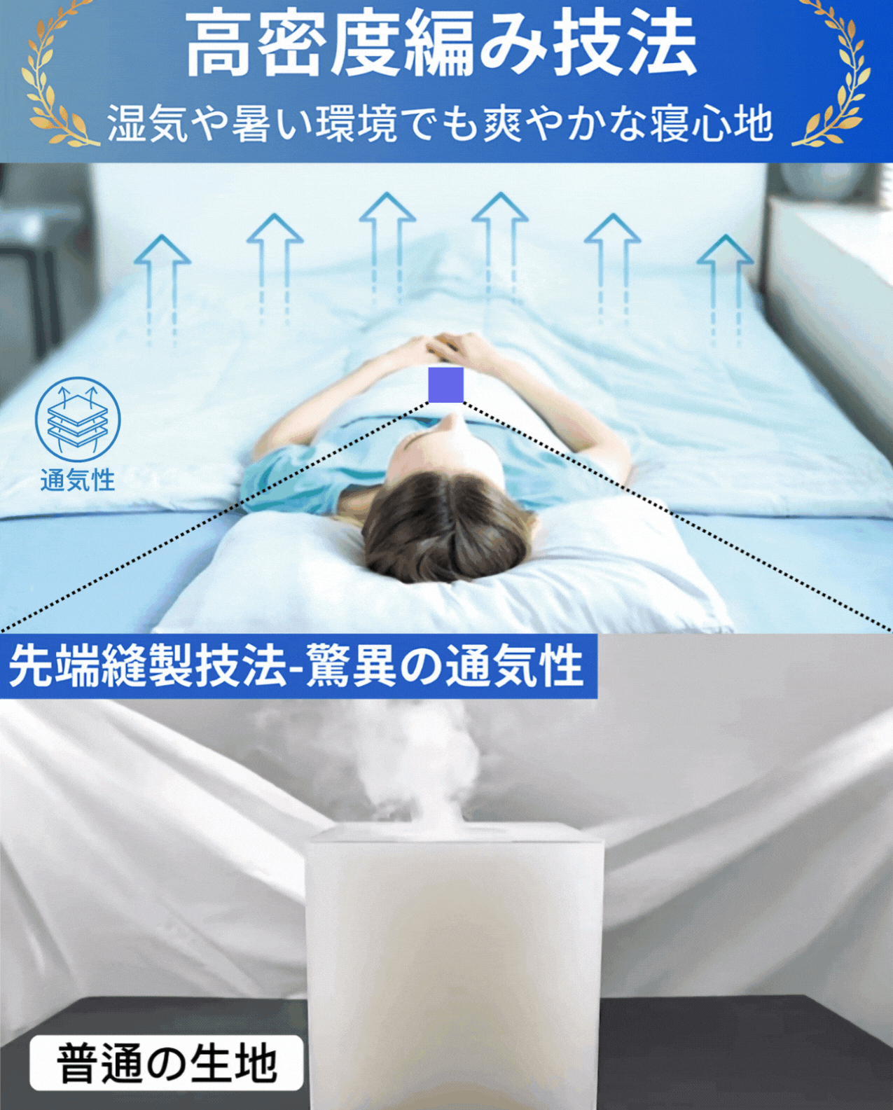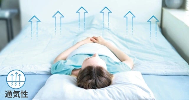 そこで必要となるのが、吸収した熱を発散し、睡眠中の発汗などで上がる湿度を調節する「吸湿・通気性」です。