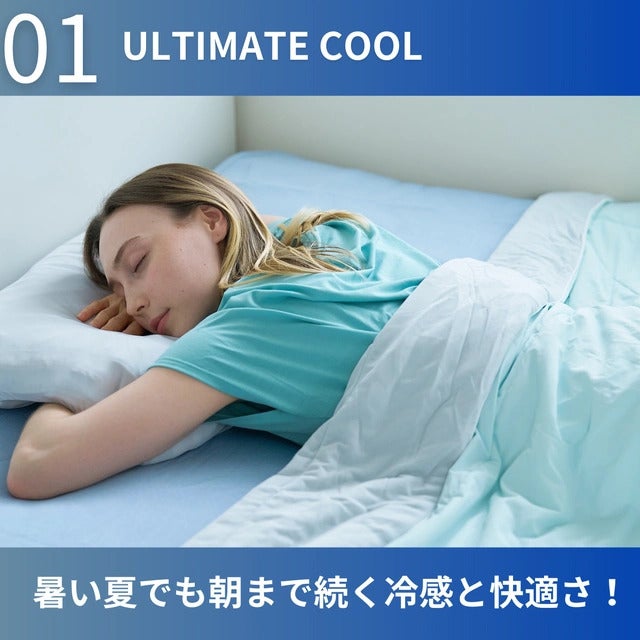 冷感掛け布団「INFINITY COOL」(インフィニティ クール)は最新のテクノロジーを惜しまなく採用し、冷感効果も吸湿・通気性にも優れた究極の1枚で、暑い夏でも朝まで続く冷感*と快適さ!