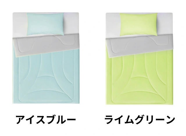 A アイスブルーとライムグリーンの2配色です。また、Q-MAX値はアイズブルーが0.281W/㎠、ライムグリーンが0.401W/㎠となっています。冷感機能に差がありますので、商品を購入される際はその点にご注意ください。