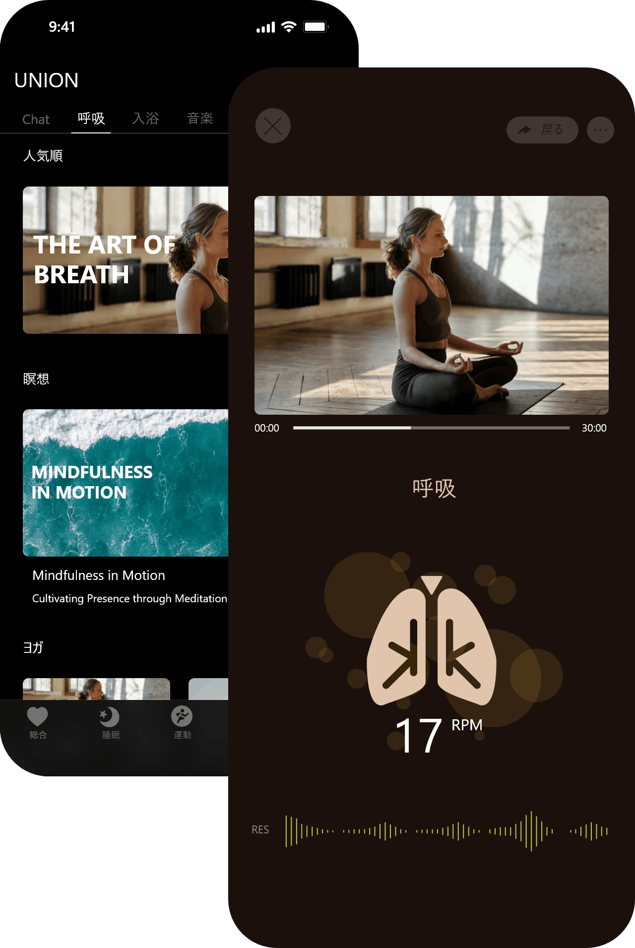 ヨガの基本要素の一つは深呼吸であり、これは腹式呼吸とも呼ばれています。深呼吸は主に副交感神経系を優位にさせ、心と体をリラックスさせます。アプリケーションで提供される睡眠ヨガのコースを使用することで、iREOは身体の呼吸パターンを分析し、パーソナライズされた睡眠のアドバイスを提供することができます。