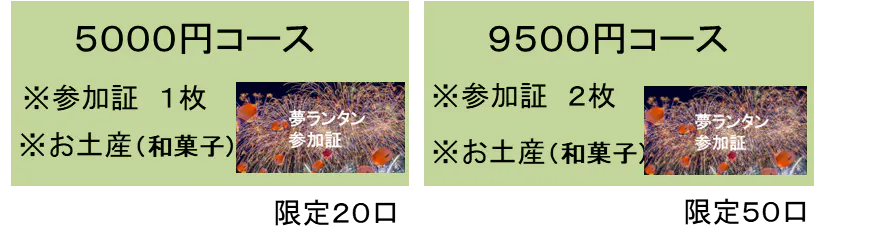 今回は夢ランタン250個とイベントのフィナーレに花火100発を上げたいと思います。