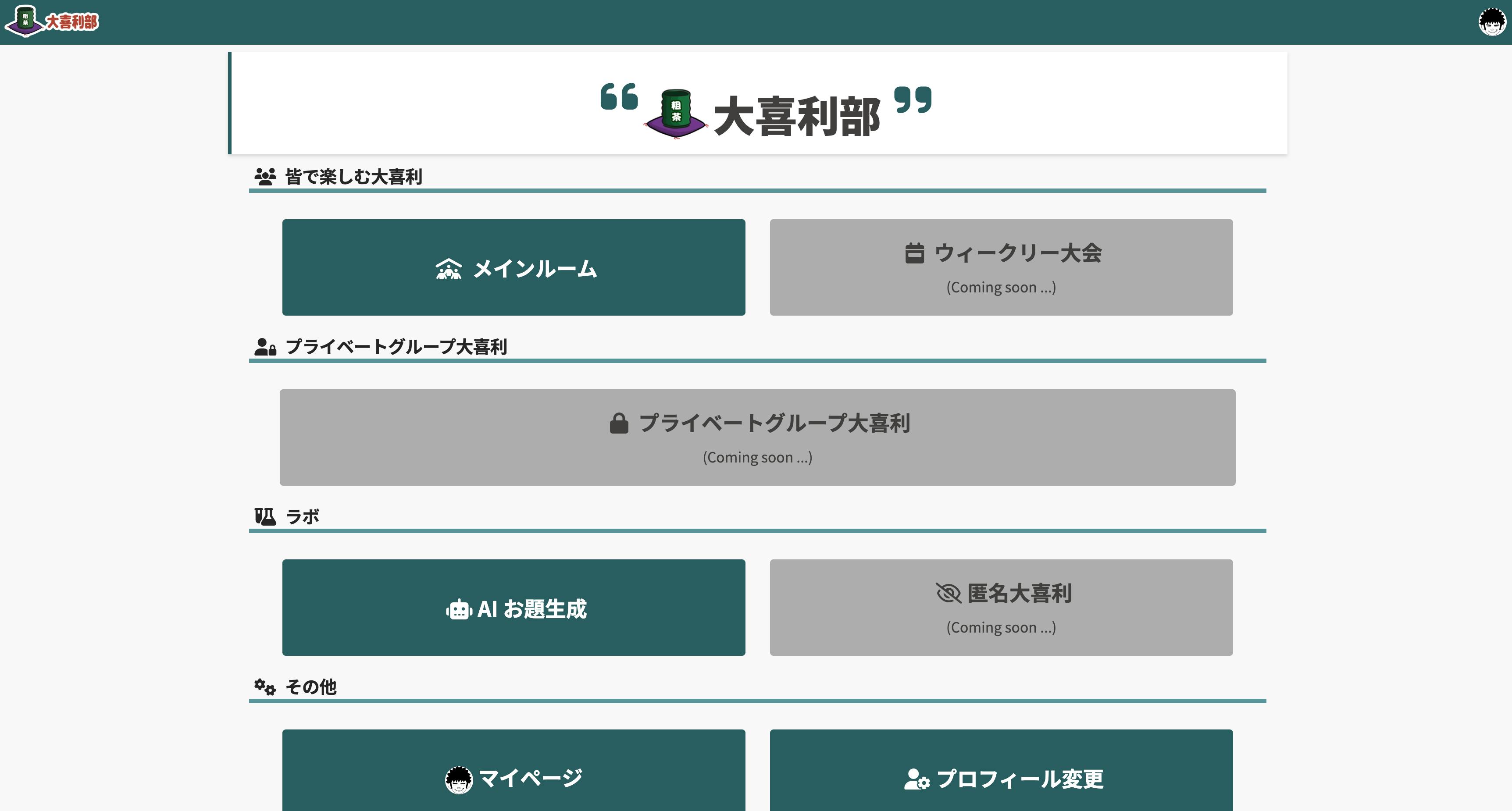 しっかりとした軸の大喜利Webサービスを展開しながら、ラボという形で実験的な様々な大喜利を、継続的に開発していきたいと考えています。