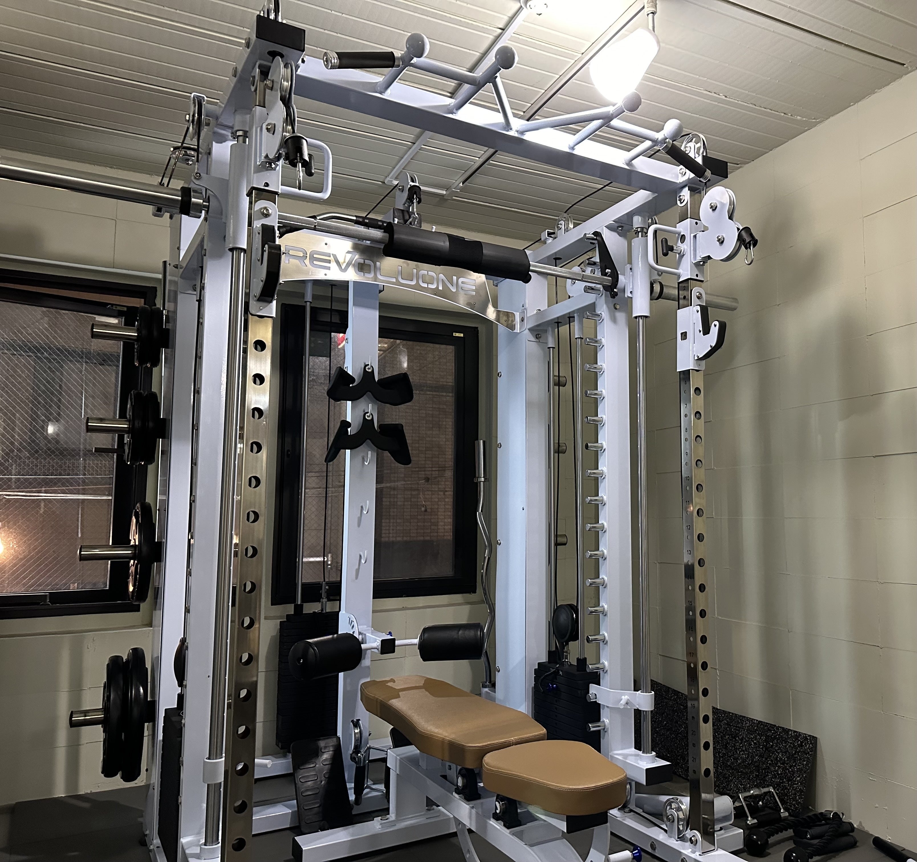 初心者の方からトレーニング経験者まで幅広く対応可能な「REVOLUONE(レボルワン)」さんのオールインワンスミスマシンを導入。