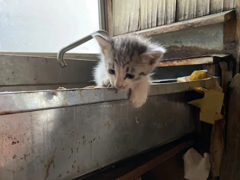廃墟から朝から夜までずっと鳴き続けていた仔猫たち