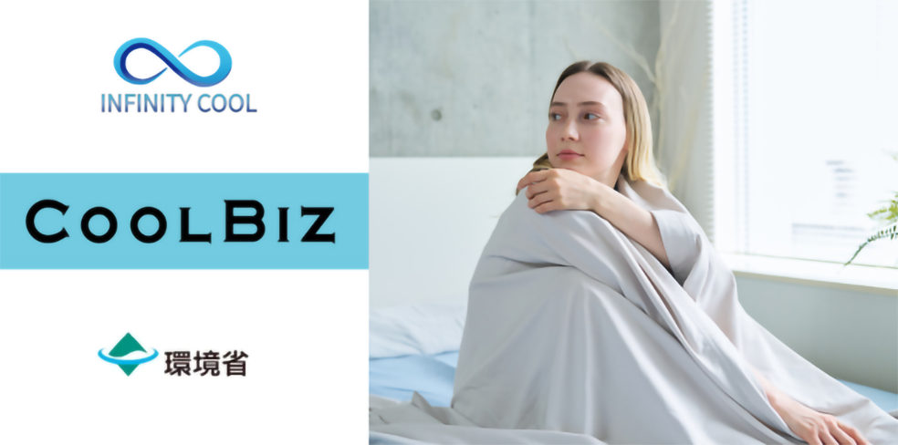 朝まで快適冷感が続く冷感ブランケット「INFINITY COOL BARNKET」は、環境省の『COOL BIZ』(クールビズ)を推進しています。