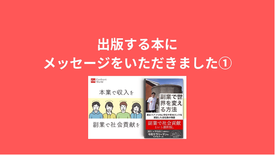それでも、一人でも多くの人に副業で社会貢献という働き方や、挑戦することの楽しさを知ってもらいたい。本業以外で諦めていた人に踏み出せる勇気を与えたい。一人でも多くの人の心を動かしたいという思いで、なんとか書き上げることができました。