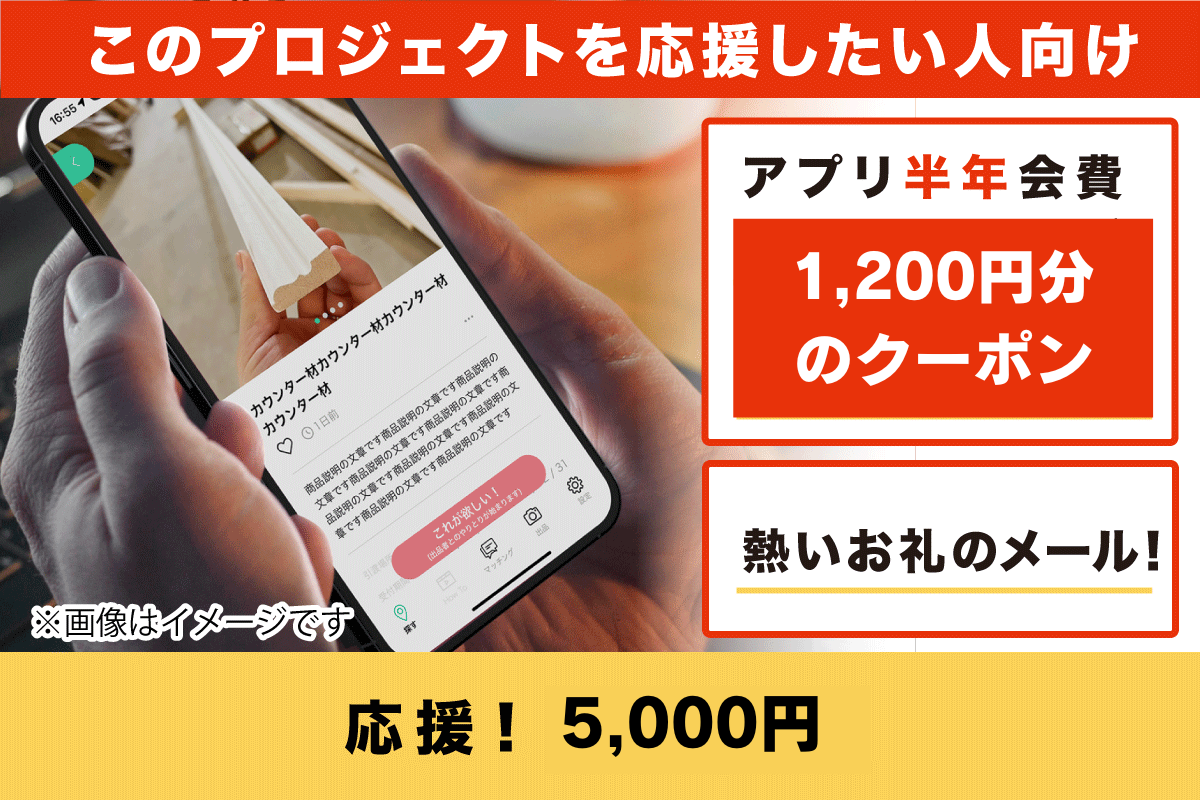 アプリができても利用者さんがいないと建築業界の廃材の問題の解消や「サステナブルな社会づくり」など本来の目的が達成できません。あと、アプリの運営コストもかかります。志あるスポンサーを募らせていただきたいという理由もあり、このプロジェクトを立ち上げました。