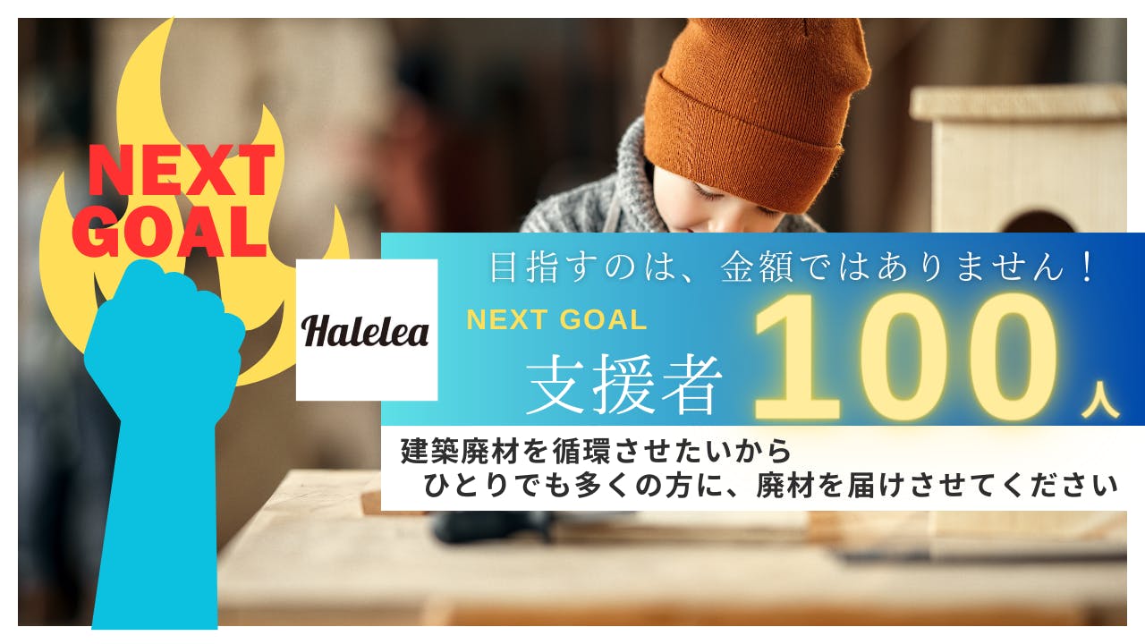 2023/11/22 17:37皆さまのおかげで、わずか2日で第一目標を達成することが出来ました!なんというスピード!応援してくださった皆さん、本当にありがとうございます。ですが、ほっとはしていられません。私たちにとって、むしろここからが本当のチャレンジ。Haleleaがクラウドファンディングに挑戦している目的は、新しい取組みを1人でも多くの方に知っていただくこと!そこがとても大切です!だから、Haleleaが目指すNEXT GOALは金額ではありません。ギフトコミュニティアプリHalelea が実現したいのは、現場から出る廃材や残材を欲しい人に届ける仕組みをつくり循環する社会をつくること。アプリを利用してくれる方だけでなく、多くの方に関わってもらい、プロセスそのものもを共有したいと思い、次の目標は「支援者数:100人」を目指します。どうかどうか、100 人達成までお付き合いください。ご支援、応援、どうぞ宜しくお願いします!!-建築廃材に命を吹き込む-ギフトコミュニティアプリ Halelea(ハレレア)近藤雅也 もっと見る