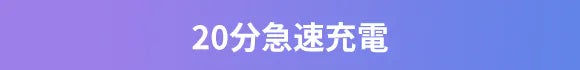 製品にはType-Cポートを搭載しており、付属のケーブルをつなげば簡単に充電できます。急速充電器と併用するとわずか20分でフル充電できます。出かける前に少し充電しておけばOK。