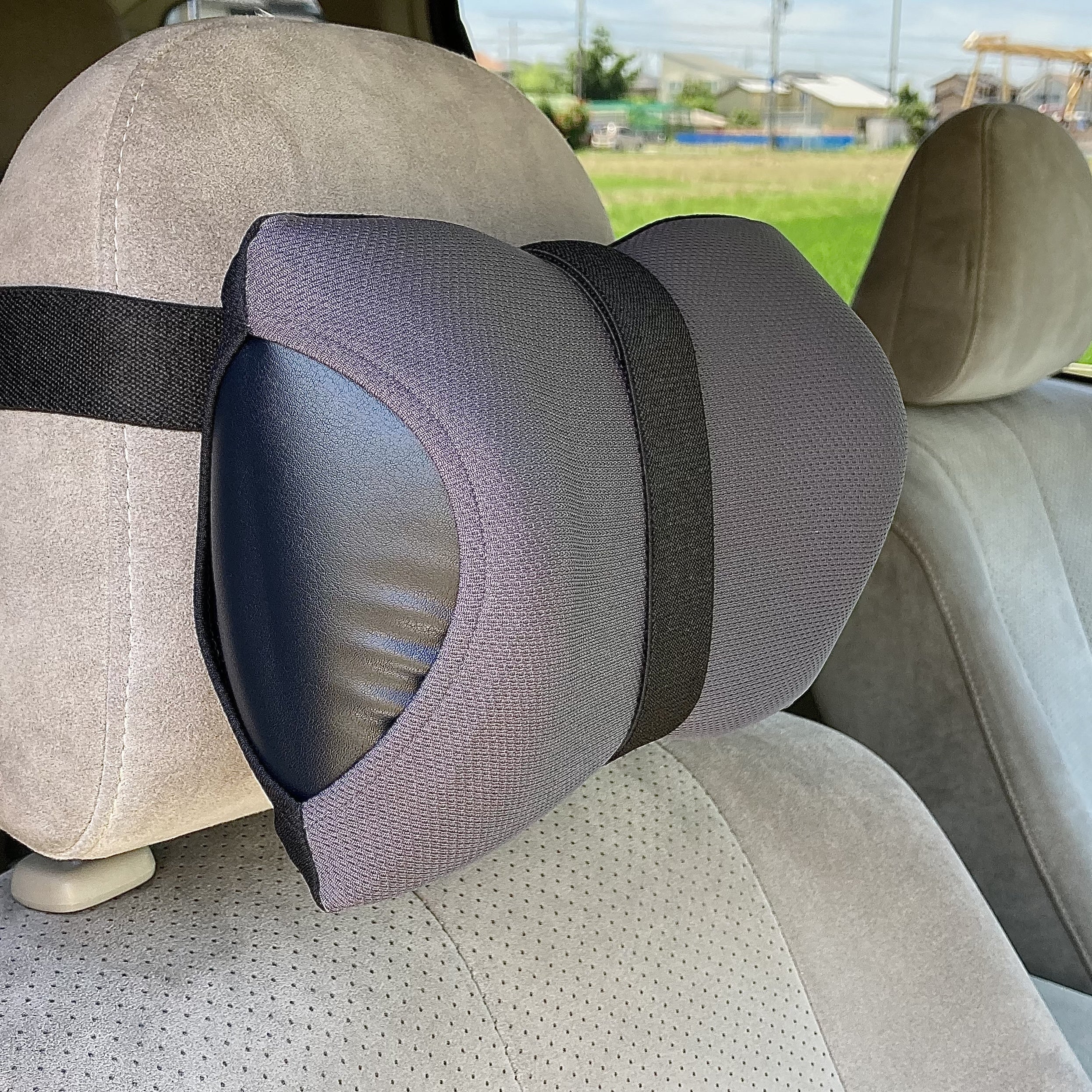車用ネックラックはこれらの振動を、ふんわり包み込むことで首にかかる負担を吸収する構造として設計し、頭を支えて首を守ります。
