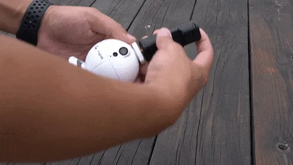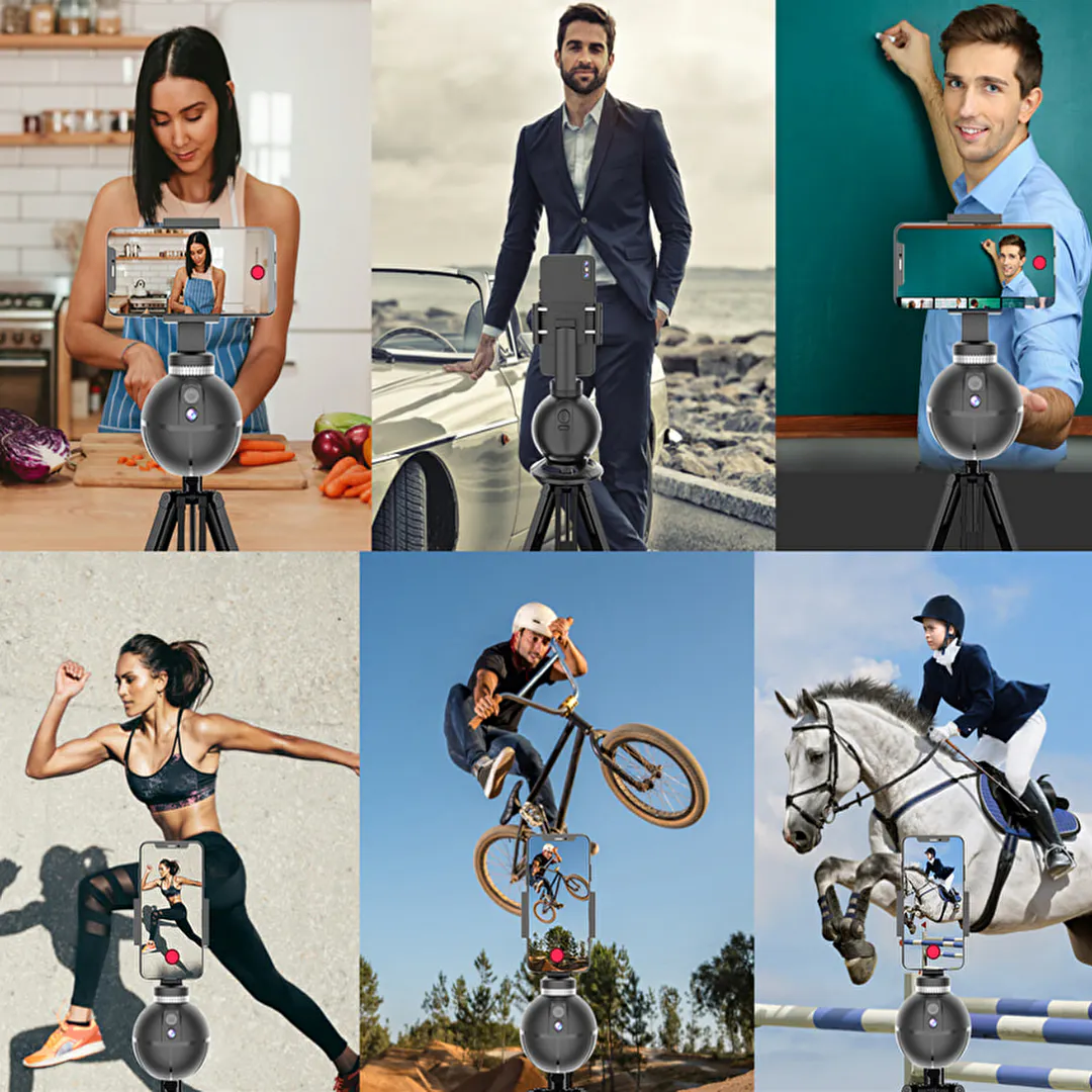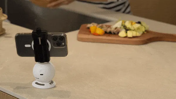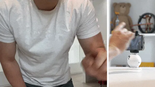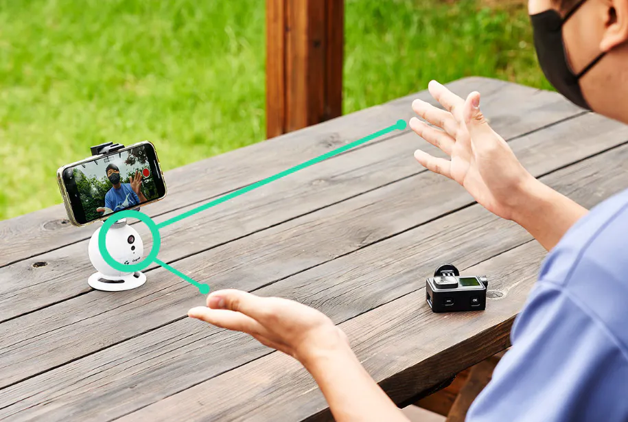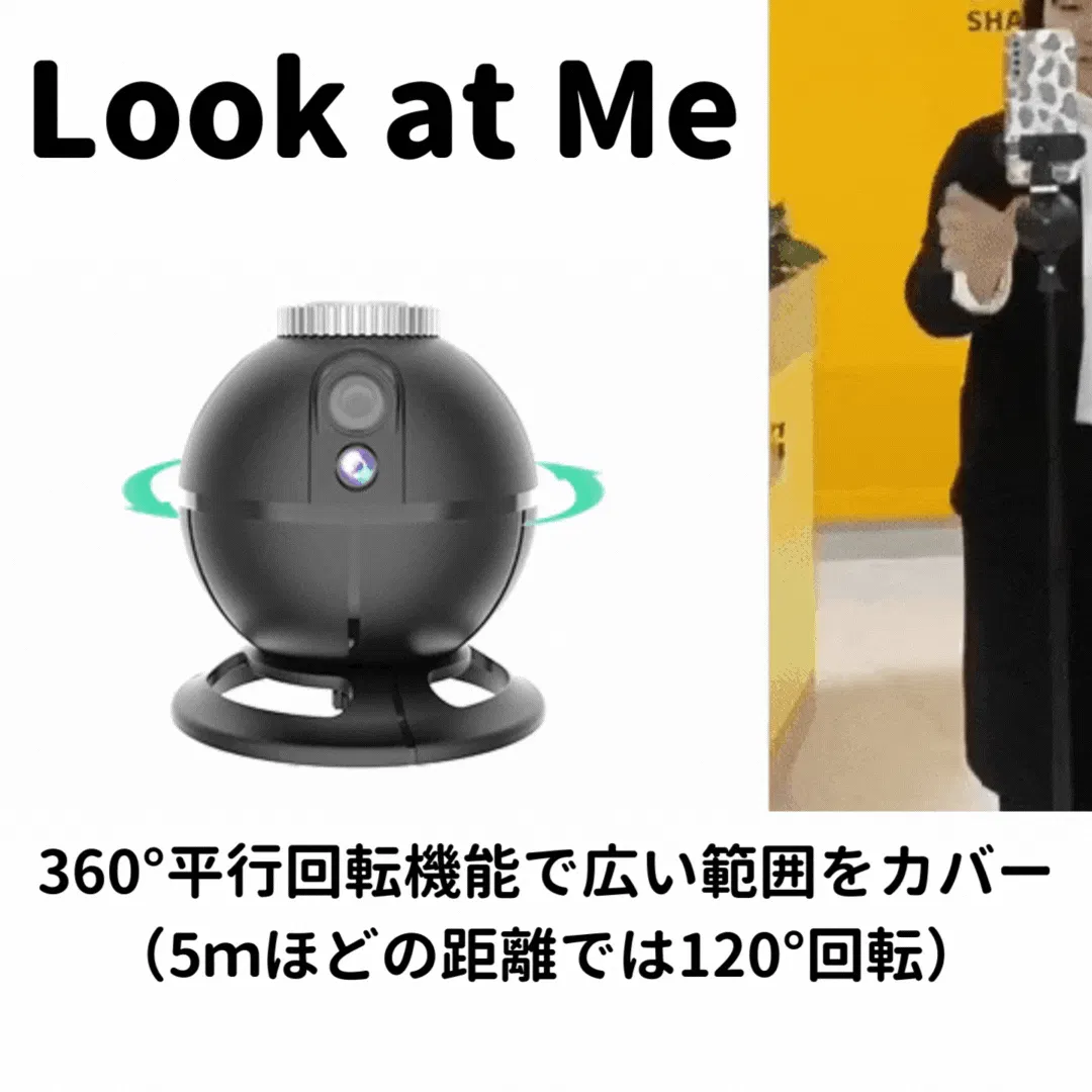 ・カメラが被写体を認識した後、青い光が点灯している状態で動作を開始すると、被写体を360°追跡します。1mから4mほどが最適な距離です。