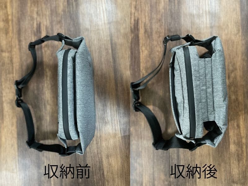 いつものボディバッグでは足りない、ちょっと荷物が多めになる日にも便利です。