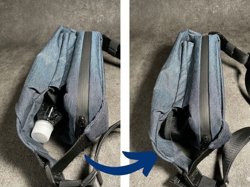 メインポケットの容量は2Lで、ペットボトル2本が入る幅と奥行があります。