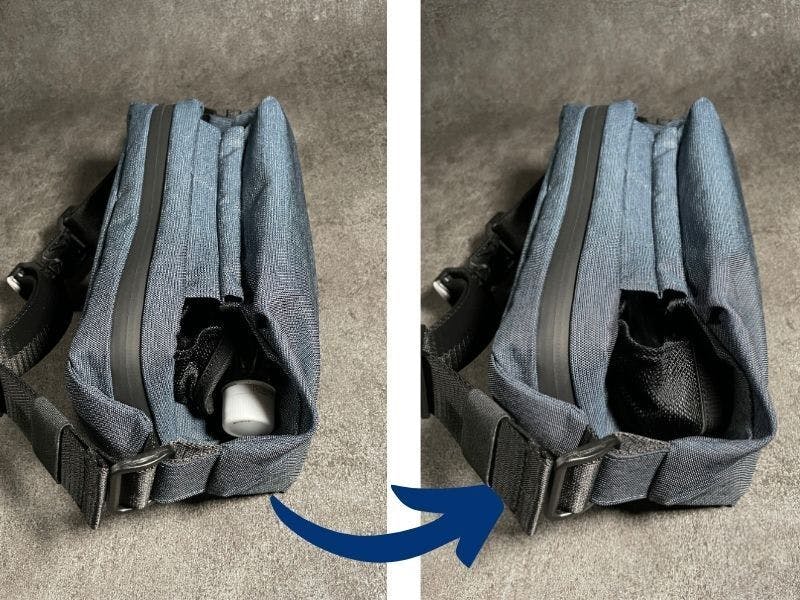 ボディバッグの課題であったポケットが少なく中身がぐちゃぐちゃになる点を改良。