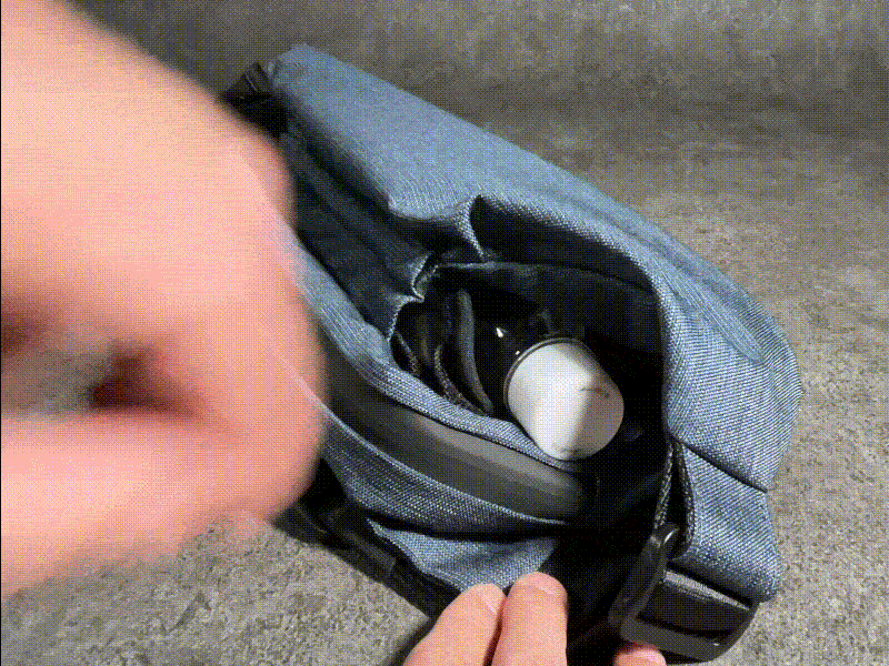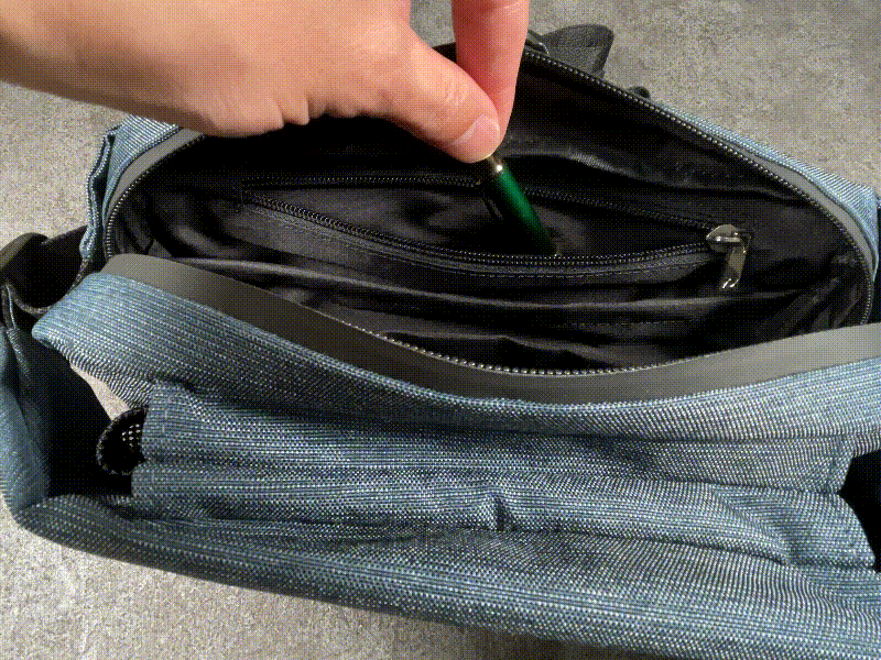 軽量で耐水性に優れたナイロン生地と、水を通さないファスナーで雨粒をはじいて水の侵入を防ぎます。