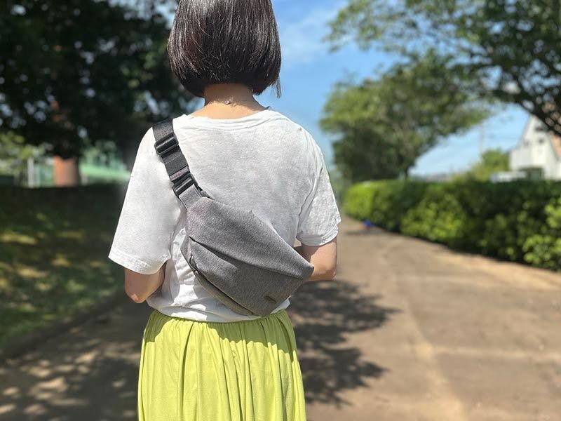 右肩にかけたバッグを外し、左肩に。こんなスタイル変更も一瞬でできます。