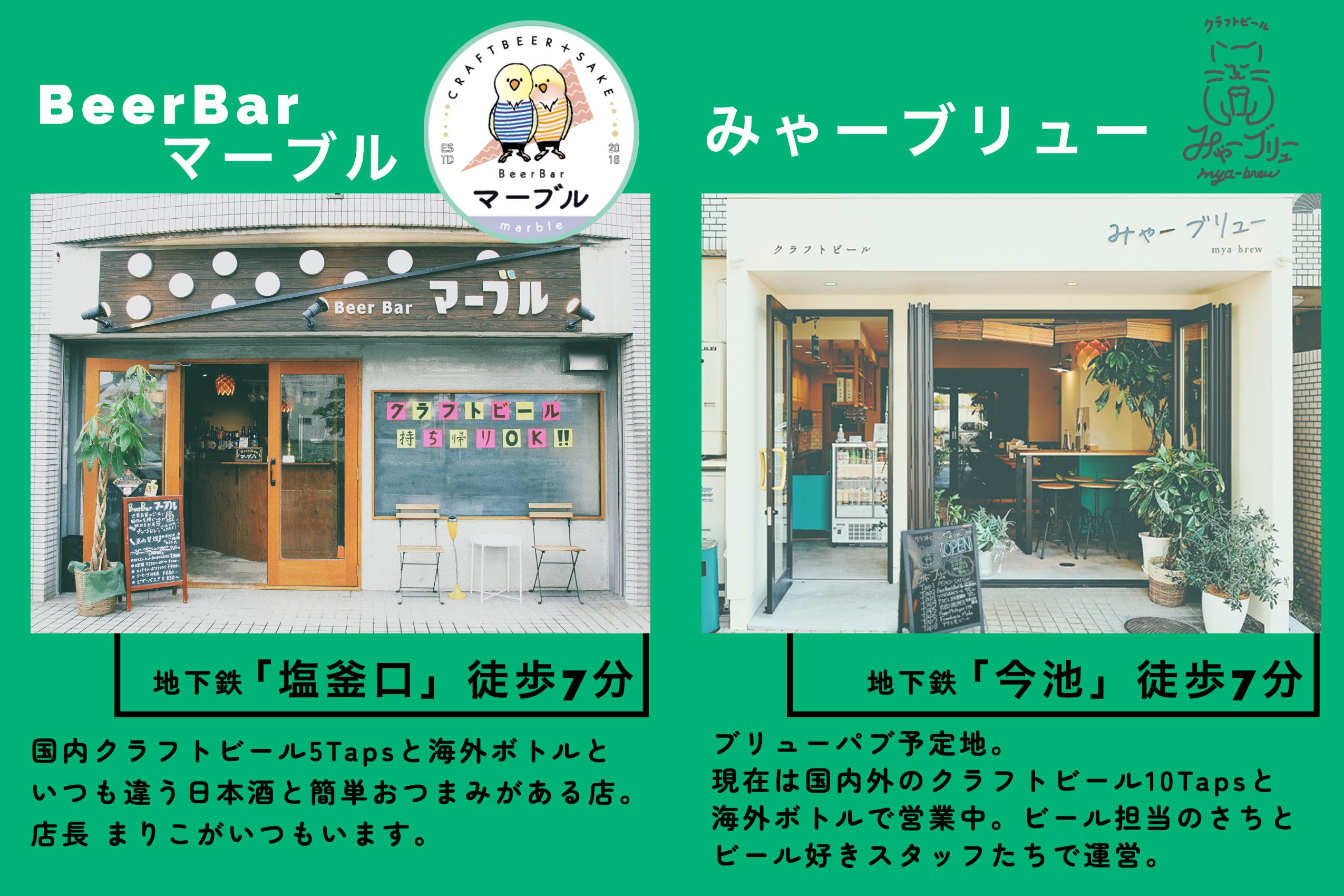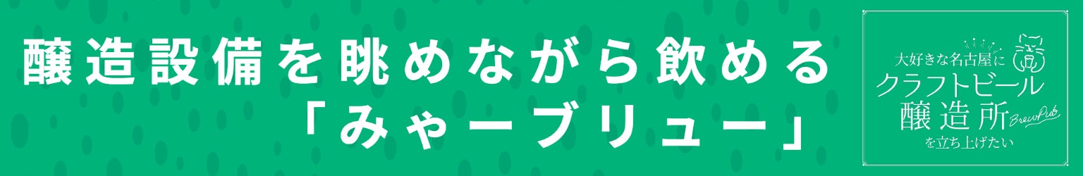 私たちは「クラフトビールでつながりを。一緒に新たなワクワクをうみだす」をビジョンに掲げ、名古屋市内に2店舗のビアバーを運営しております。2018年から1号店のBeerBarマーブル(以下マーブル) (名古屋市天白区:「塩釜口駅」徒歩7分)と、2021年から2号店のみゃーブリュー(名古屋市千種区:「今池駅」徒歩7分)です。みゃーブリューにて、醸造を予定しています。