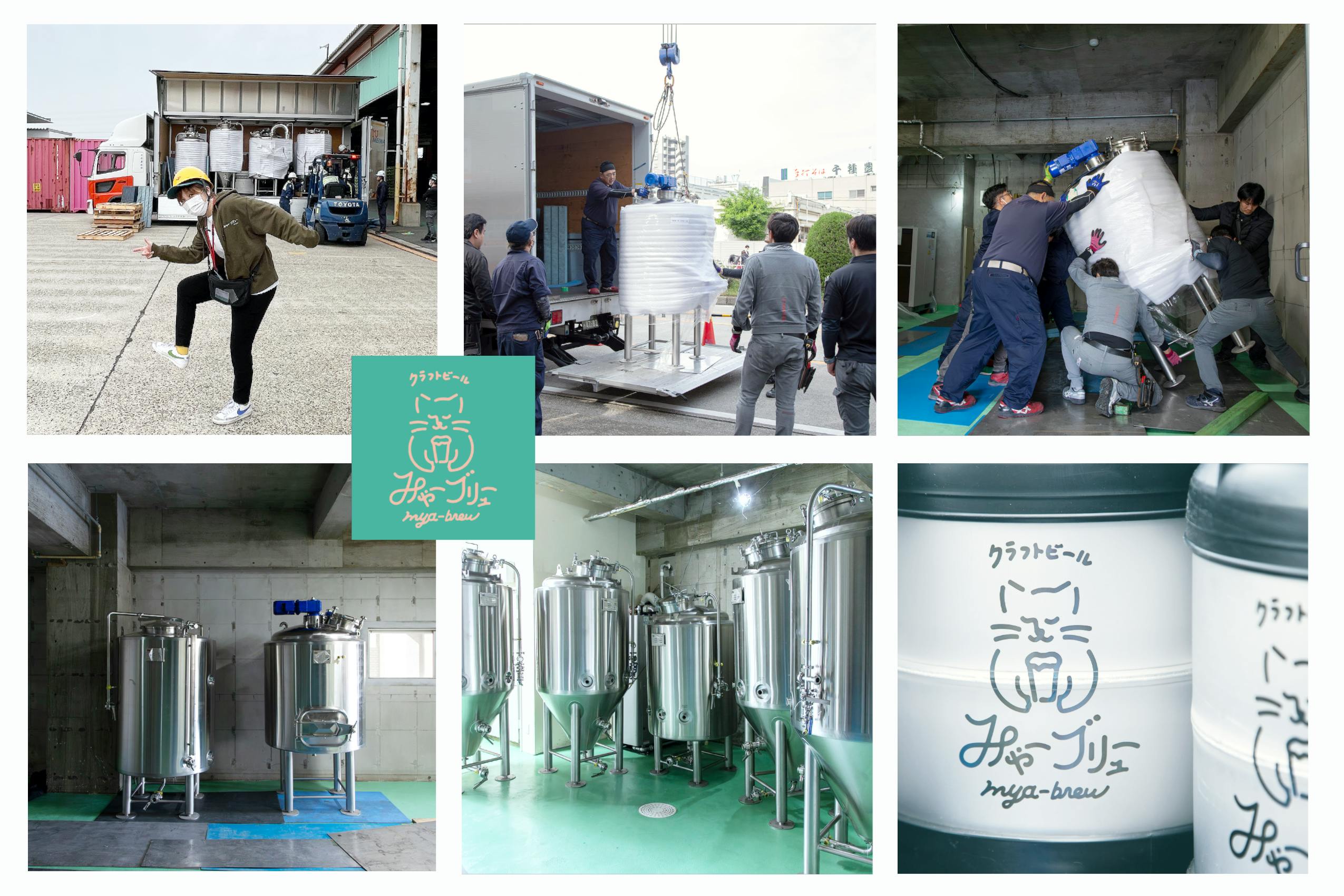 しかし、予定していた設備の購入を諦めたりなどしてなんとか資金のやりくりをして、ようやく2023年4月末に中国から醸造設備が届き、みゃーブリューに搬入されました。