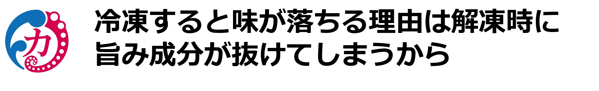 細胞が壊れた状態で解凍すると水分と一緒に旨み成分が出てしまい、結果的に “旨み成分の少ないタコ“ になってしまいます。