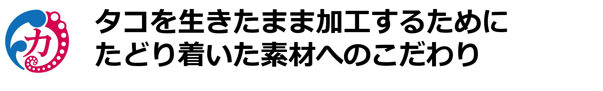 せっかく美味しいタコの良さを最大限生かせる方法はないか、試行錯誤の末、マルカ髙橋水産はタコを生きたまま加工することで、タコが本来持っている “旨み成分をそのまま閉じ込めたタコ“ を製品化することにしました。