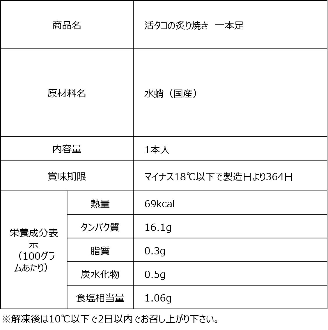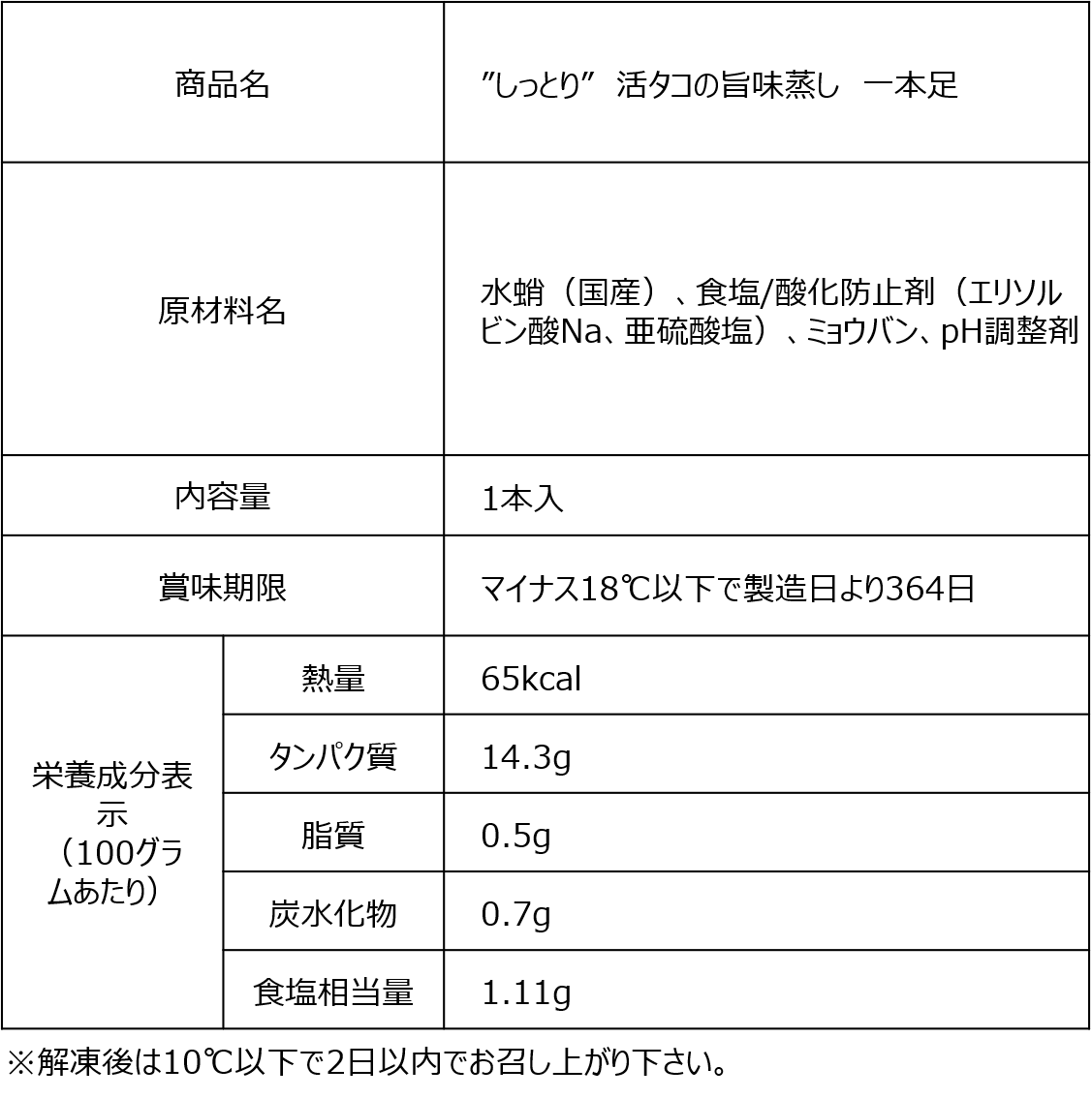 ※1:『活タコの炙り焼き 一本足』 と 『”しっとり” 活タコの旨味蒸し 一本足』の原料はミズダコを使用しております。