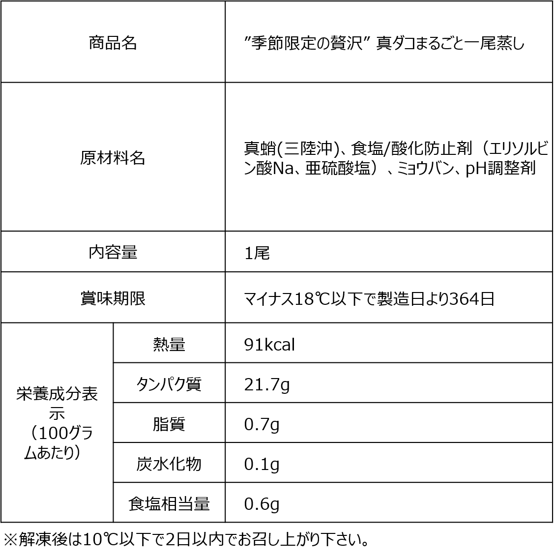皆様が知っているタコの姿1匹丸ごとをご家庭で目にしていただくことができ、ミズダコ(※1)とはまた違った国産真ダコ(※2)ならではの弾力のある食感をお楽しみ頂けます。
