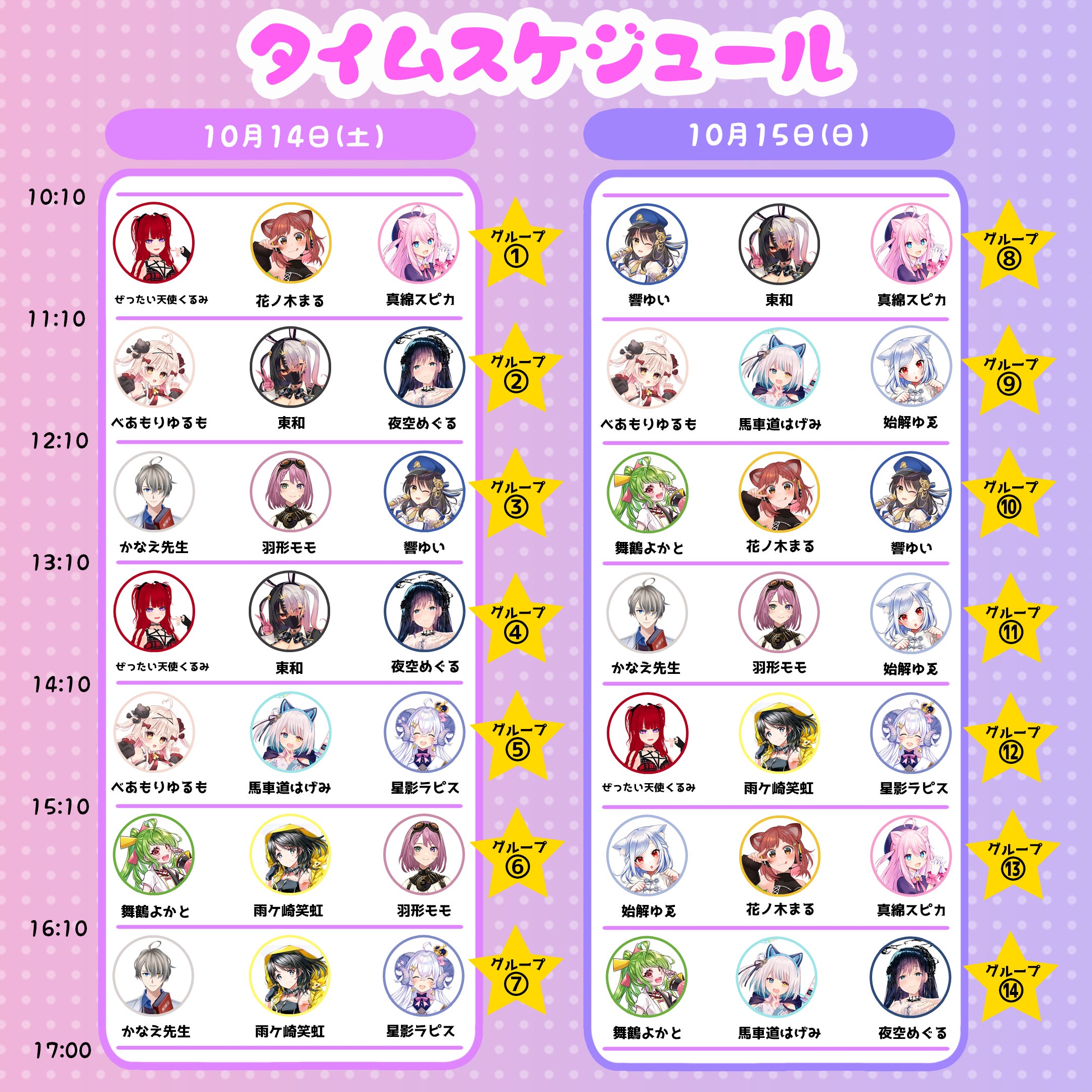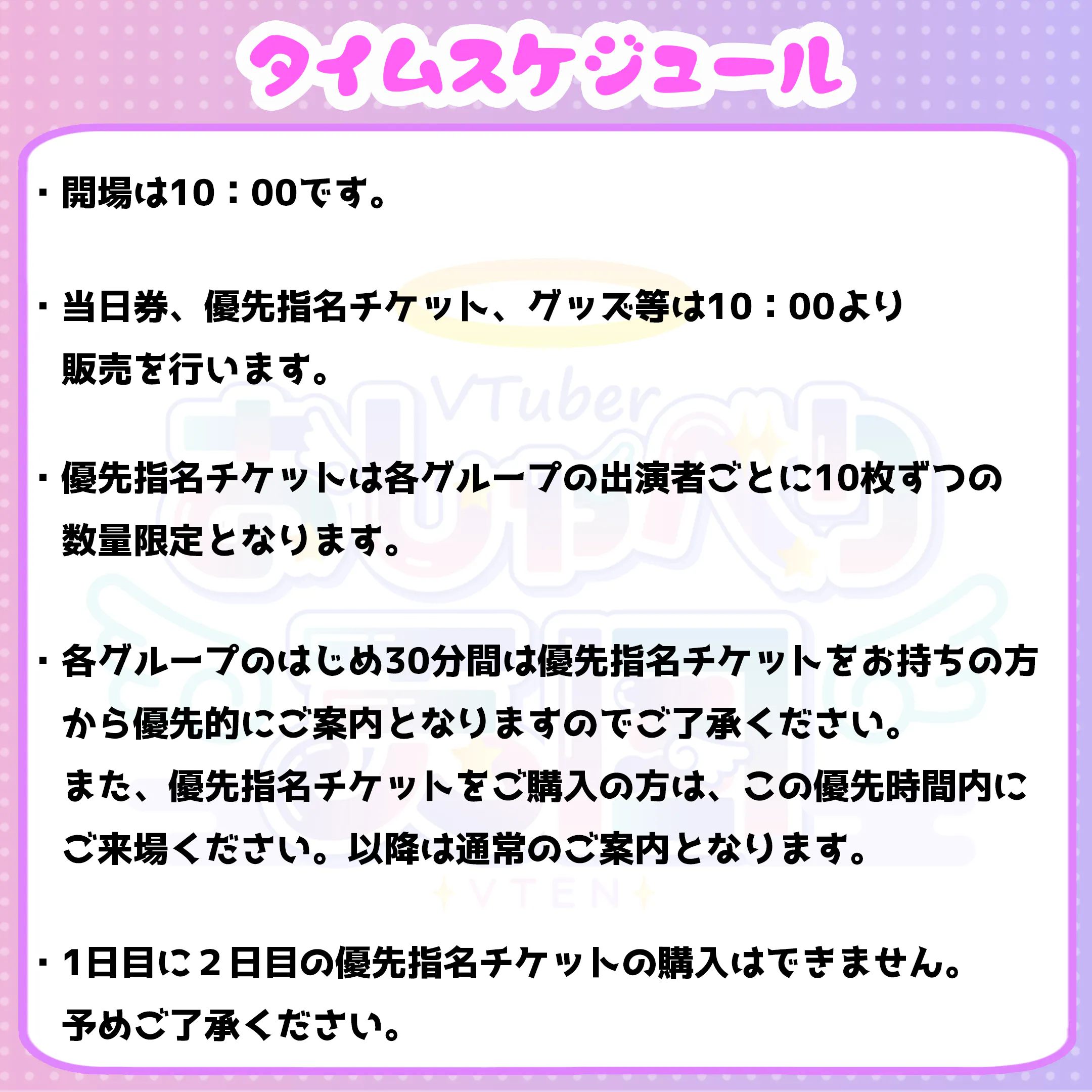 ※タイムスケジュール内での先着順のため、混雑によってはご希望のVTuberさんと話せない可能性もございます。