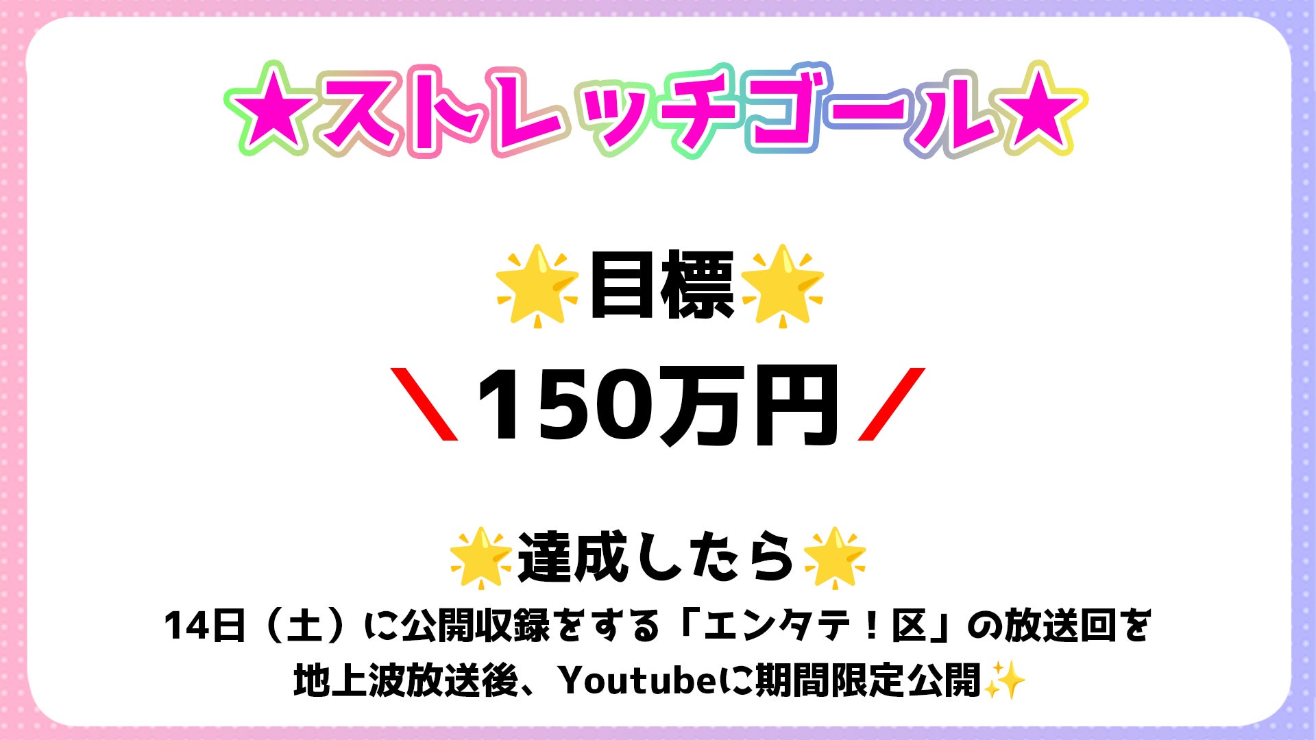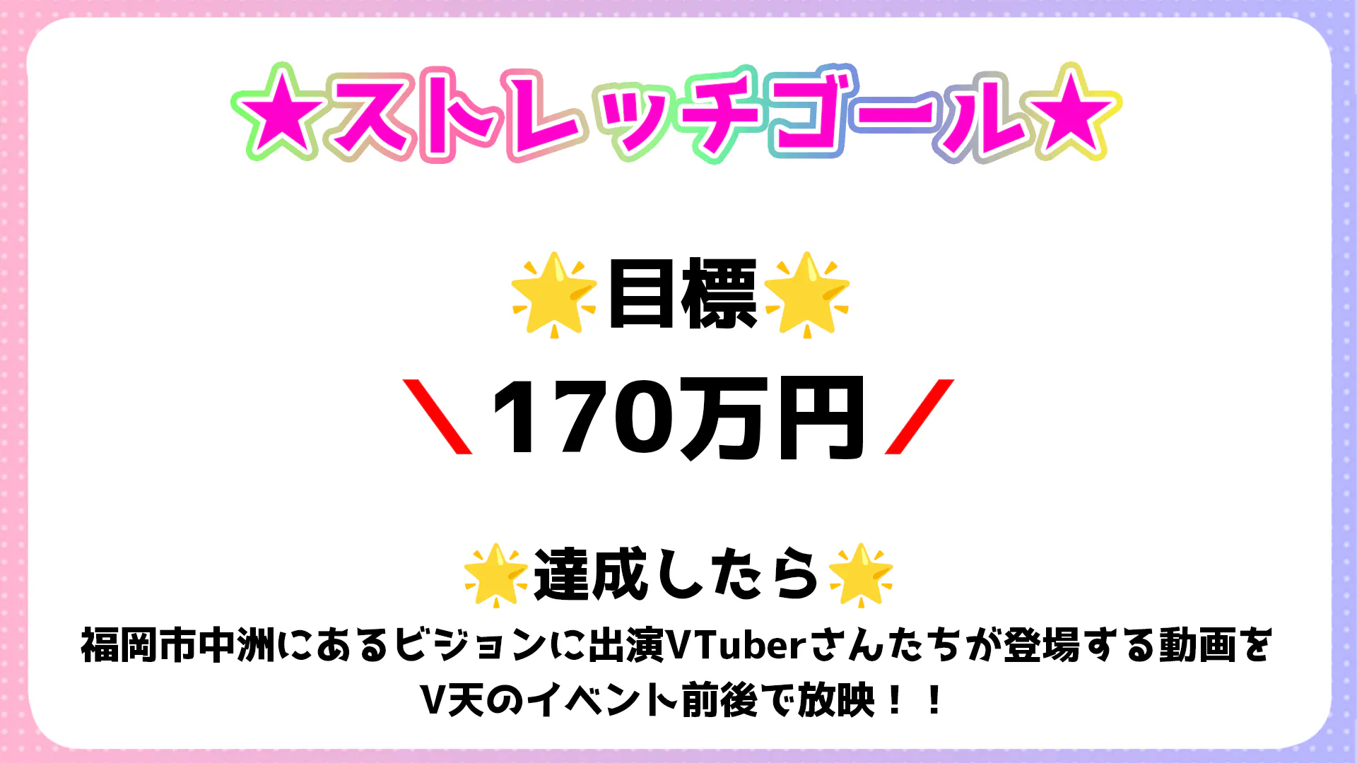 今後さらにVTuberおしゃべり天国から、「地方開催のVTuberイベント」と「地方発信のVTuberカルチャー」を、さらに盛り上げていくために、ストレッチゴールを設けることにしました!