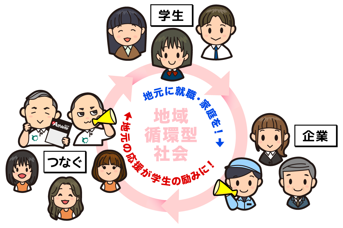 具体的には、企業で働く若手先輩社員に登場していただき、後輩たちに応援メッセージを送ります。その上で、今働いている仕事の内容ややりがいを伝えることで、企業の認知度向上を図り、働く企業が地元にあることを伝えます。