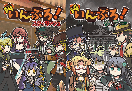 CAMPFIREでのクラウドファンディング(https://camp-fire.jp/projects/view/44992)にて多数のご支援をいただき、2017年の冬コミ(C93)には、即興演劇カードゲーム『いんぷろ!』シリーズの2作品『いんぷろ!スタイリッシュ』『いんぷろ!ホラー』を同時発表。予想外の反響があり、おかげさまで1ヶ月ほどで完売いたしました。