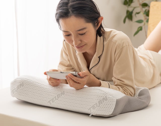頭をしっかり支え首や肩にやさしくフィット。ふわっともっちりの寝心地。