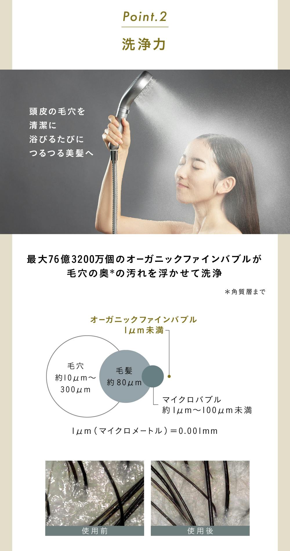オーガニックファインバブルの効果で血行が良くなり、毛穴の奥までの汚れがとれます。