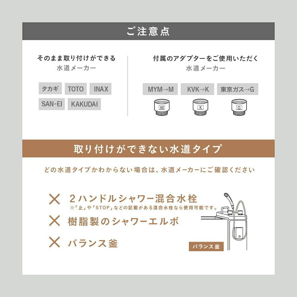 一部ネジ規格が合わない場合(G1/2 規格以外)は、ホームセンターなどで別途アダプタをお買い求めください。