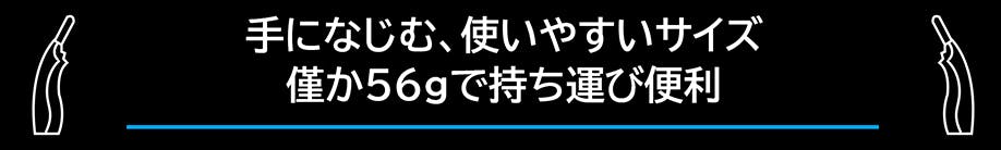 本体は手のひらサイズ、指2本分くらいの細さで、ポケットやバッグに入れて気軽に持ち運べます。