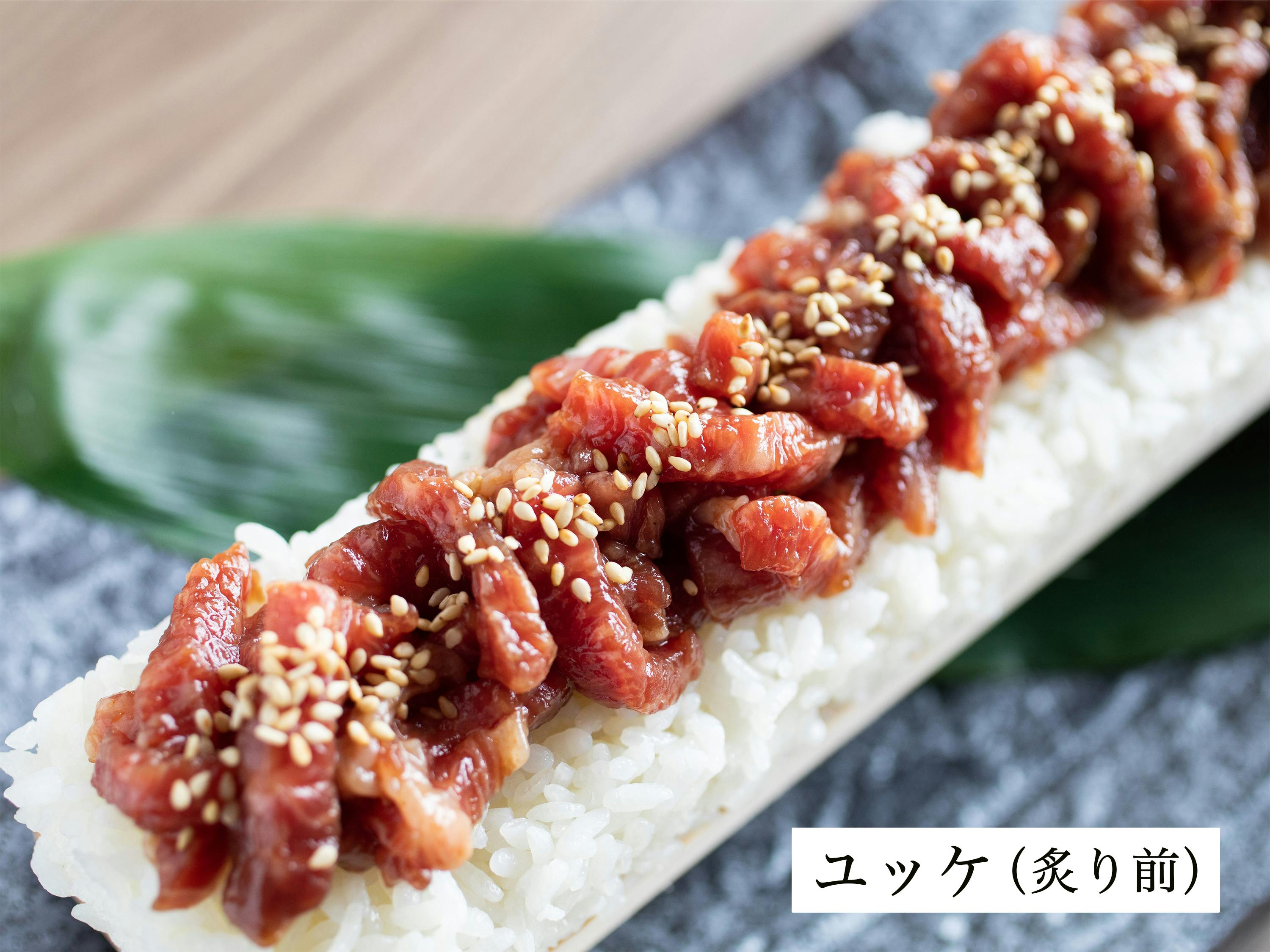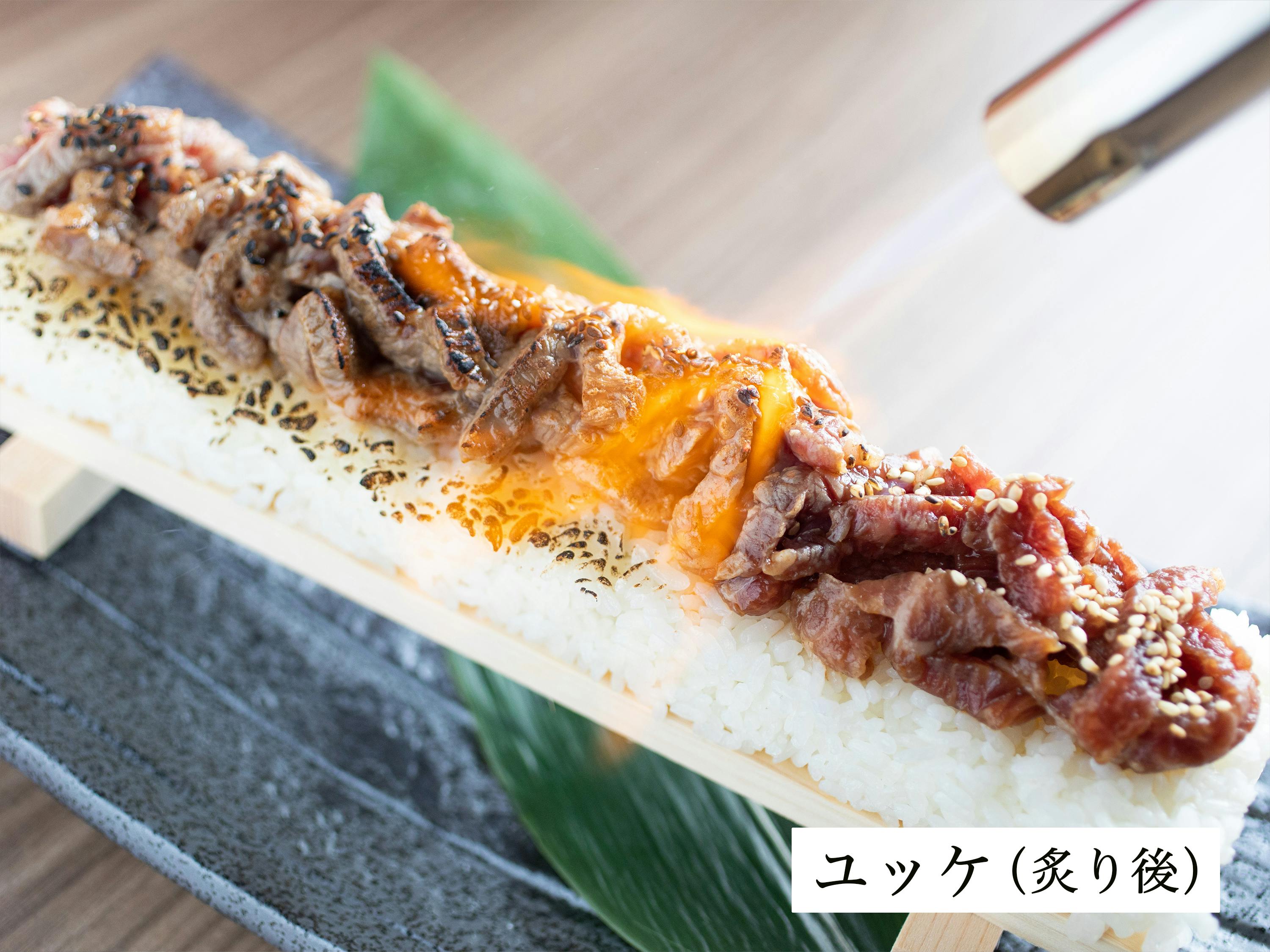 新鮮な和牛を寿司飯の上に乗っけて、バーナーでファイヤー!