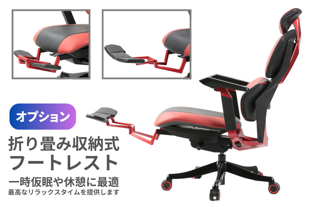 一時的な仮眠短い休憩時に最適で、究極のリラックスタイムを提供します。この追加機能により、長時間の作業やゲームセッション後の疲れた足を休めることができ、より快適な座り心地を実現します。