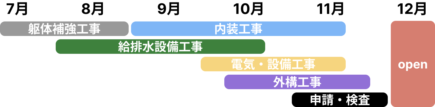 12月オープンを目標に、工事や開業に向けて進めていきます。