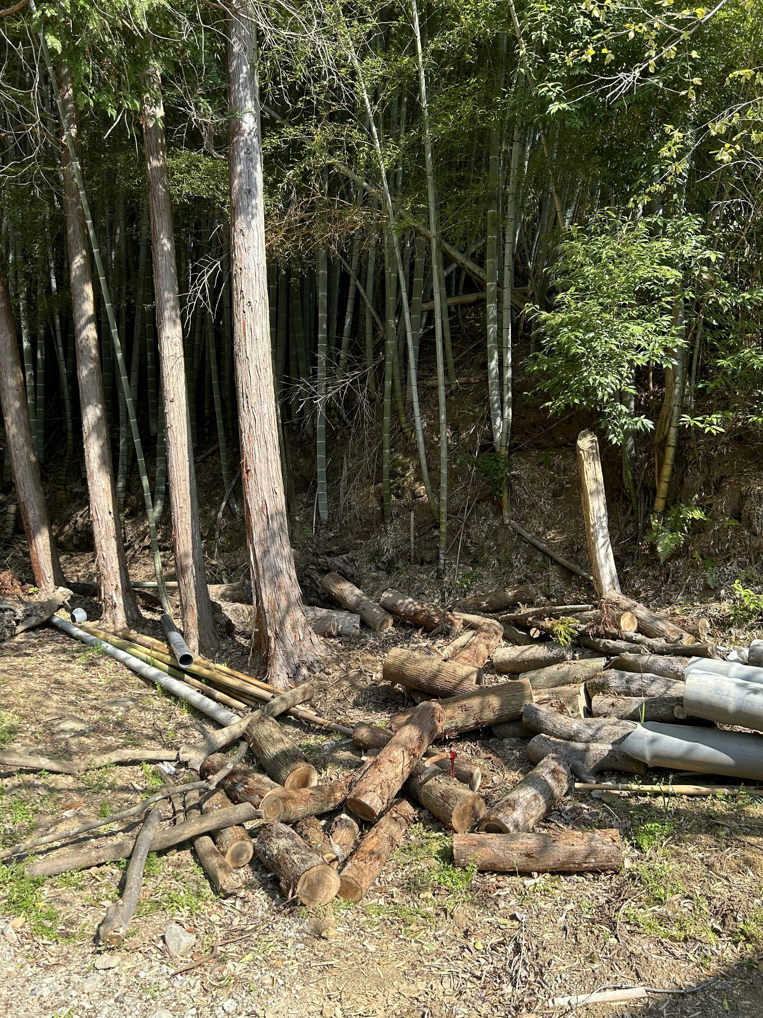 現在、手持ちの軽トラック、ご近所さんからいただいた農具、ネットオークション等で集めたチェンソーなどで作業しています。