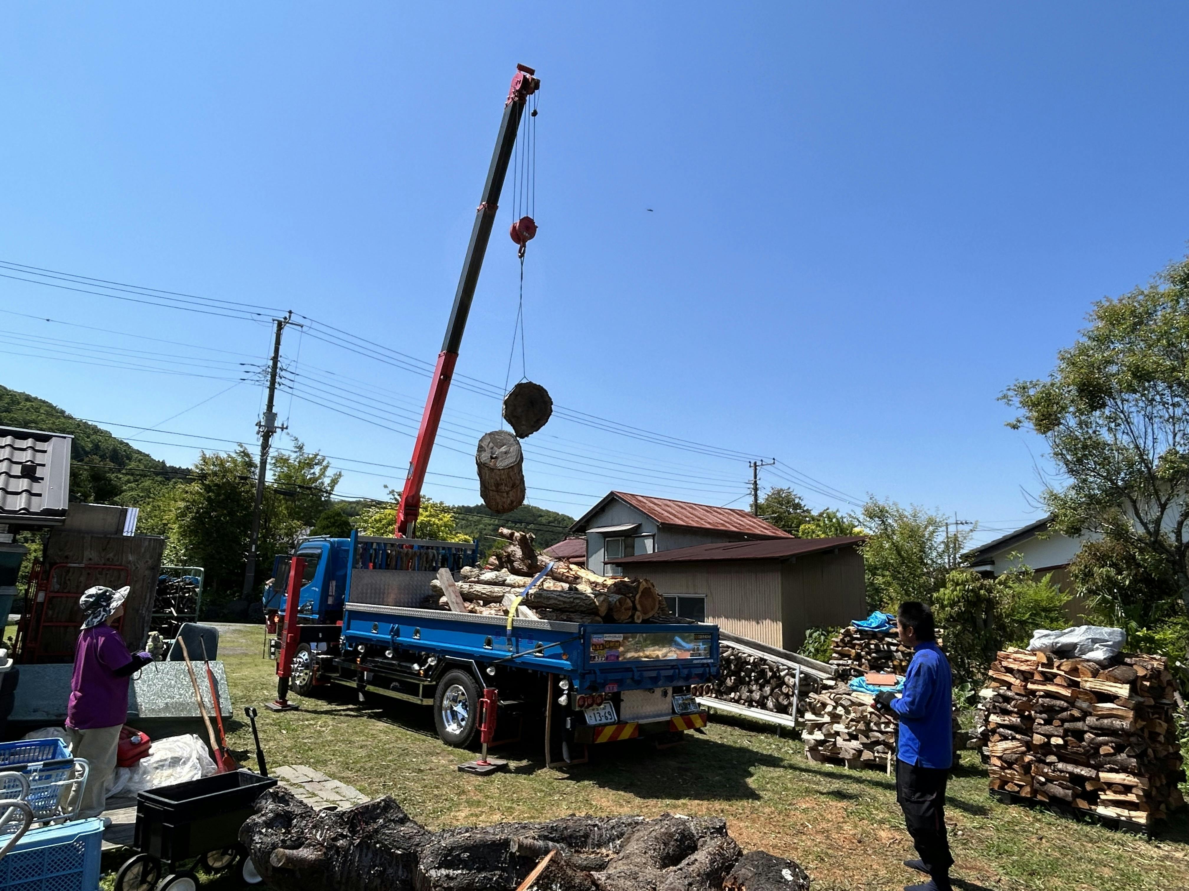 過去には、間伐した木はその場に放置していました。また巨木に被害の多い『ナラ枯れ』は、住民の高齢化が進み山に人が入らないことが原因です。このような山の荒廃を解決するにはまず、木を適正に切り出し、商品である『薪』として販売をします。このとき、山から木を切り出すのに使う『クレーン付きトラック』を購入することが、今回のプロジェクトの一つです。