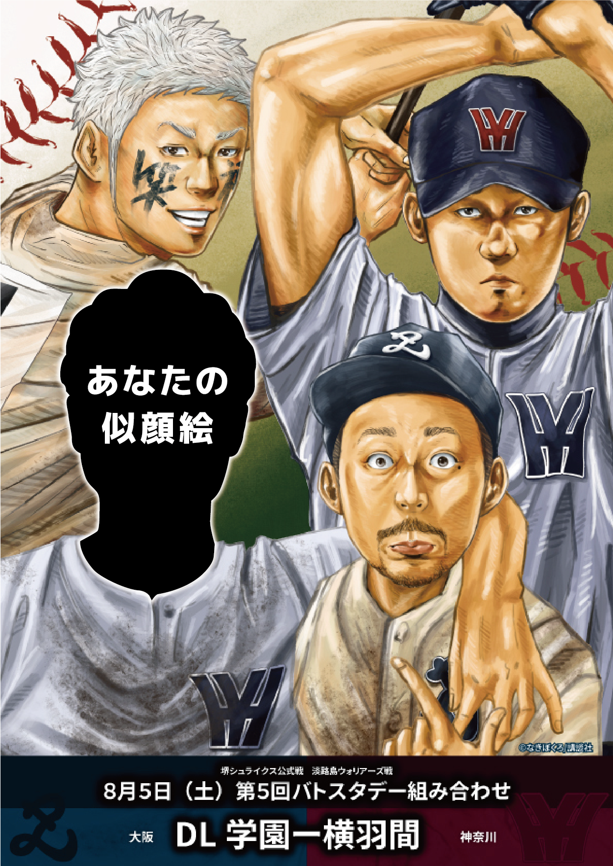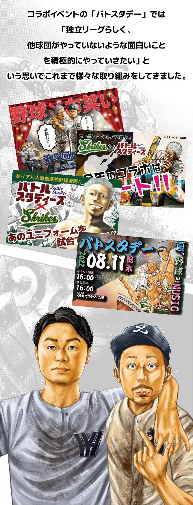 大西監督となきぼくろ先生の元PL学園という繋がりもあって、堺シュライクスは同年に高校野球漫画『バトルスタディーズ』との公式パートナーシップを締結しました。