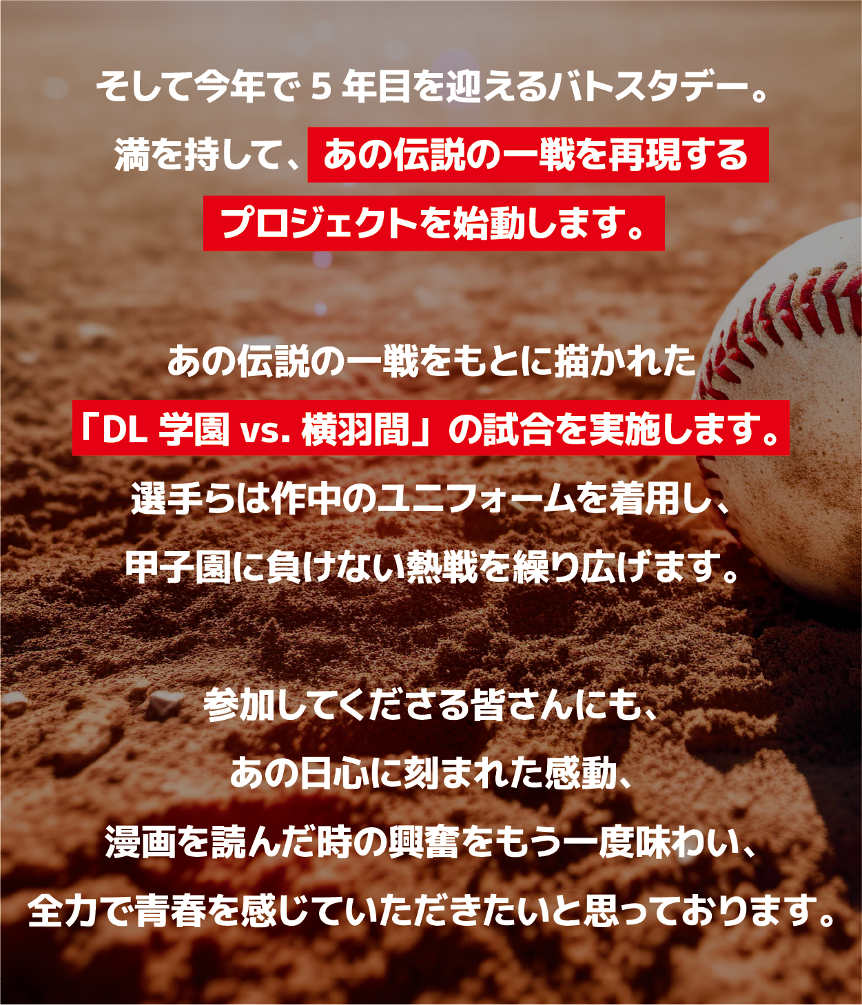 ぜひお気に入りのリターンをお選びいただき、当日の「バトスタデー」を楽しみましょう!