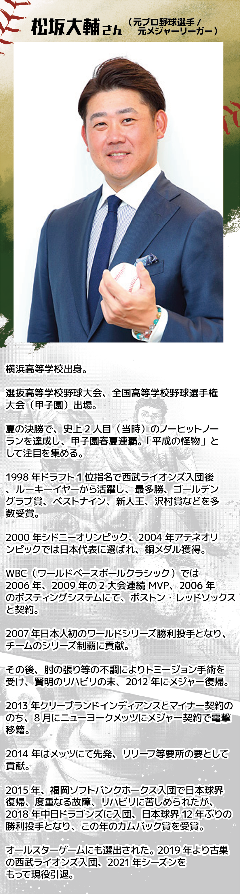 そして今回のテーマ「横浜VS.PL学園を再現しよう!」が決まった瞬間、どうしても松坂さんに来てほしいと思い、満を持してオファーを出したところ、快く引き受けていただきました。