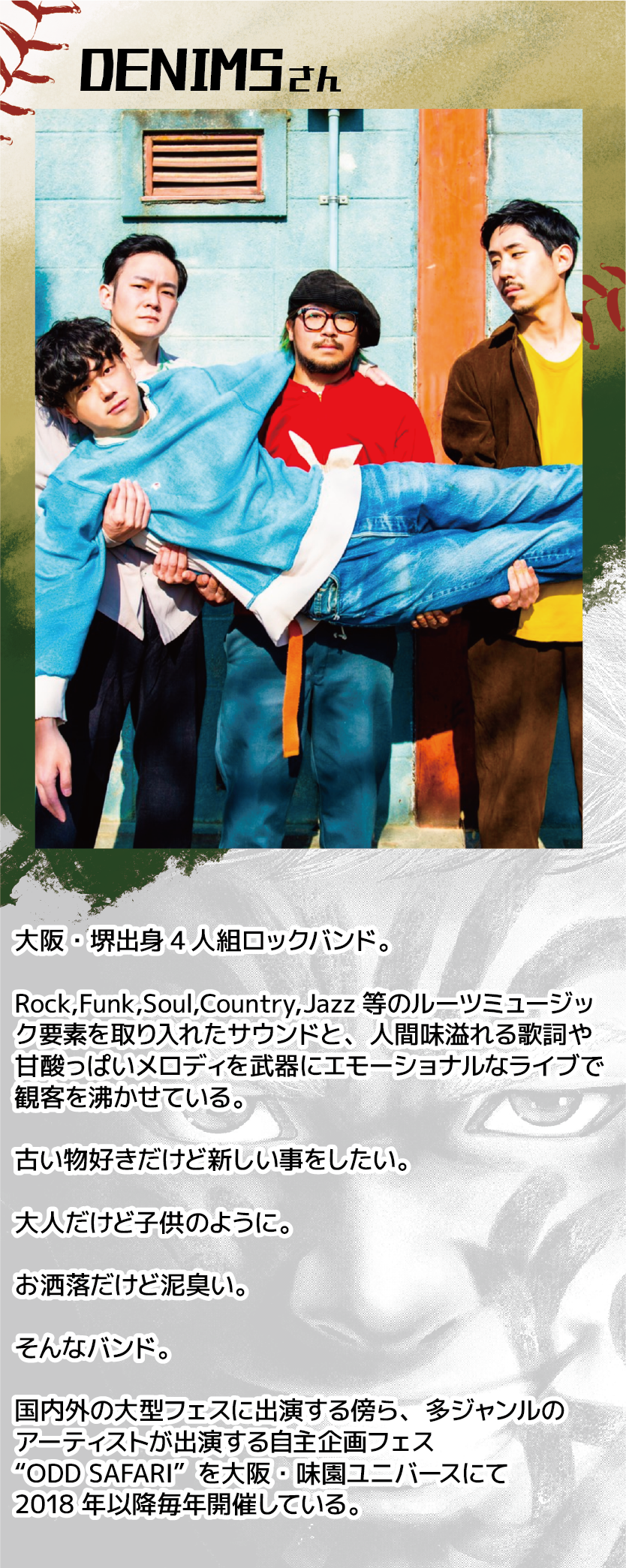 『バトルスタディーズ』のファンということで交流が深まり、最新シングルのジャケットもなきぼくろ先生が手掛けるDENIMSさん!