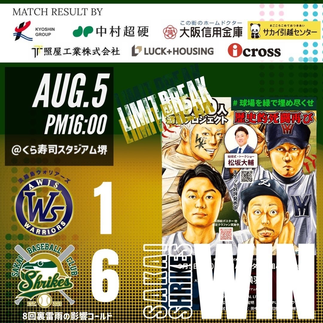 2023/08/06 20:00松坂大輔 さん、田中大貴 さん、DENIMS さんがご登場したバトスタデー。シュライクス投手陣の力投実り、相手ウォリアーズ打線を1封に抑え見事勝利!本当にたくさんの方々にご来場いただきその応援が選手の力を出させていただきました!このイベントを盛り上げ、応援していただいた皆様本当にありがとうございます!これからも、応援よろしくお願い致します!!またまたニュースにて取り上げていただいております!!伝説の「PL学園vs横浜」蘇った!松坂大輔氏「あきらめない姿勢」大西宏明氏「青春は短い」記事はこちらいよいよクラウドファンディングも、松坂大輔さんのサイン入り『バトルスタディーズ』作品のユニフォームをプレゼント企画も、残すところあと4時間で募集終了になります!クラウドファンディングをご支援いただいた方の中から、抽選で5名様にTwitterキャンペーンはフォロー・リツイート頂いた方の中から、抽選で3名様に当選のチャンスがございます!現状クラウドファンディングは150名以上の方に、拡散キャンペーンは300名以上の方に参加していただいております!Twitterキャンペーンはこちらみなさま、最後までよろしくお願いいたします! もっと見る